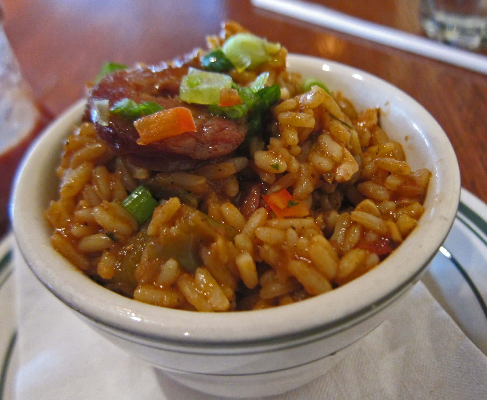 It's the same paintings and furniture, but for some reason, I liked it in this setting more. There's also a nice outdoor area, for those non-rainy, winter months. The menu looked pretty much the same and I've always enjoyed the option of a cup of gumbo or bisque to pair with a sandwich. So I went with something I hadn't had in a while, a cup of Jambalaya ($4).