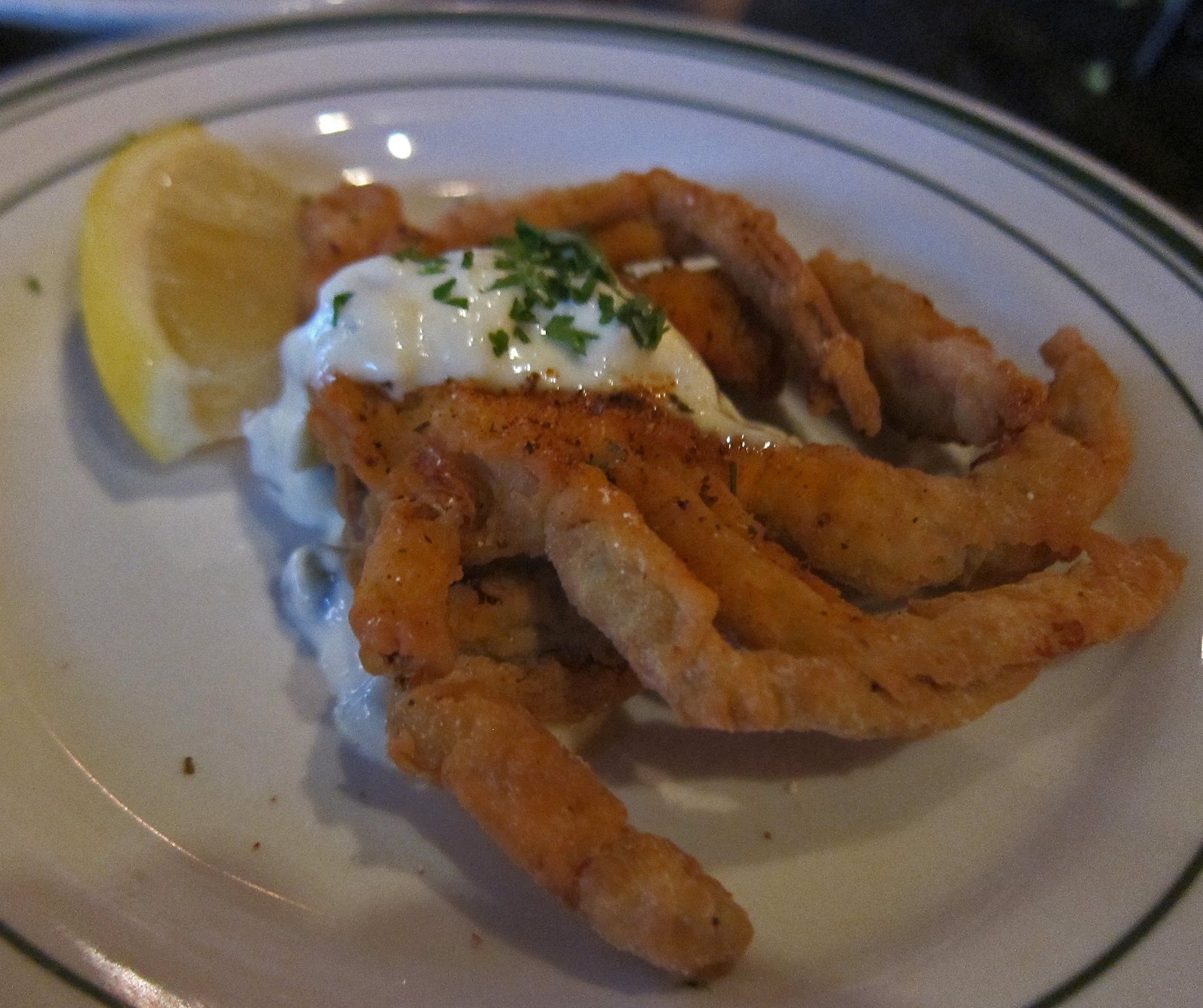 Thinking that I hadn't had a fried item here, I ordered the Soft Shell Crab Appetizer, a simple floured and deep fried soft shell crab. First, I thought the tartar sauce in this case really helped the soft shell crab….the capers in the sauce did wonders, mainly because the flavor was pretty mild. We also didn't enjoy how this was fried….preferring light and crisp, over gummy and chewy. Sad, I'd always thought they did a good job of frying here….perhaps this is an aberration.
