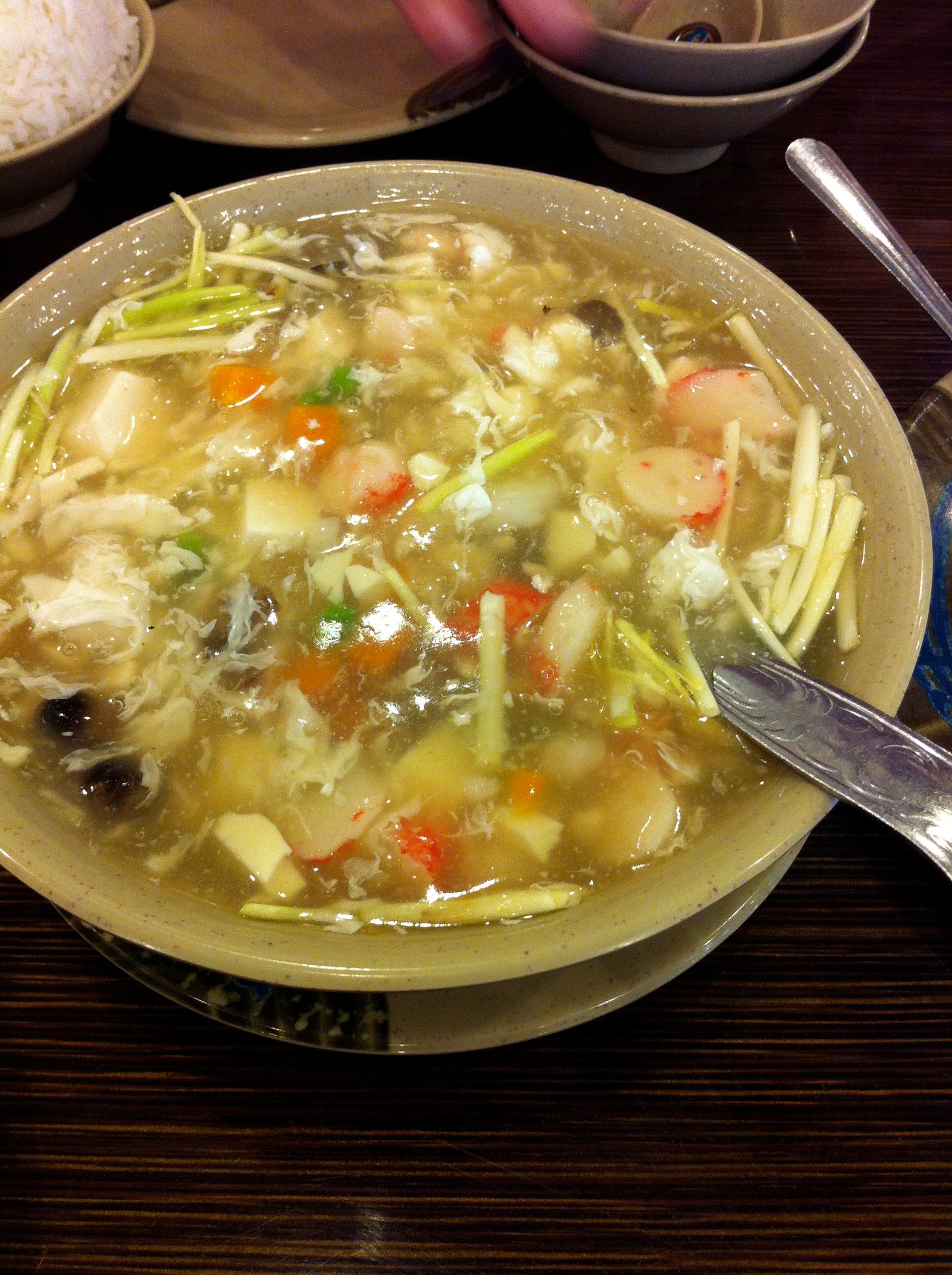 We have been going to the Sam Woo restaurant a lot lately, usually buying breakfast or lunch specials before shopping at 99Ranch market across the hall. One cold day we chose the bowl of seafood tofu egg drop soup as our meal…the broth is very flavorful and the bowl is large enough for us to share.