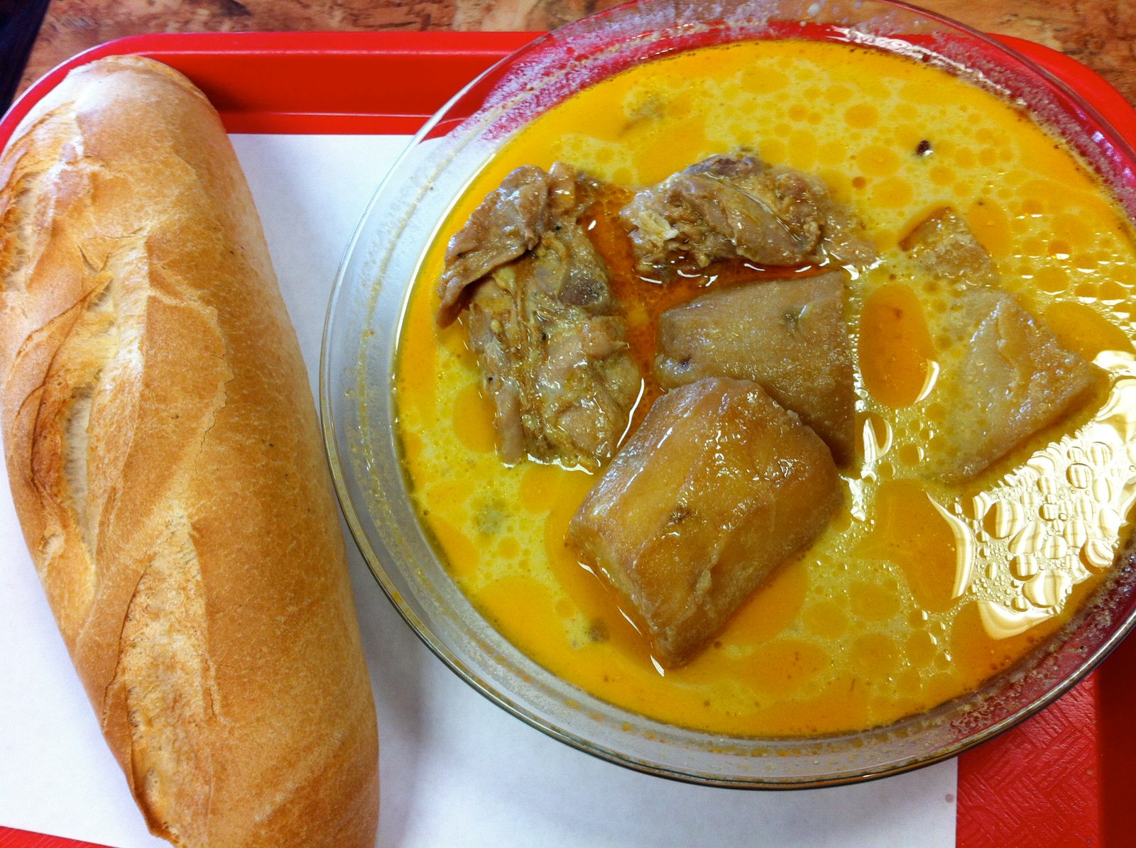 The chicken curry, in the steam tray area at K Sandwich was an automatic choice for a chilly day. The version here is magical, with the creamy, gently spicy, flavorful curry sauce covering chicken and potato pieces. When you get it to eat inside the store, it's served in this low glass bowl with fresh bread.
