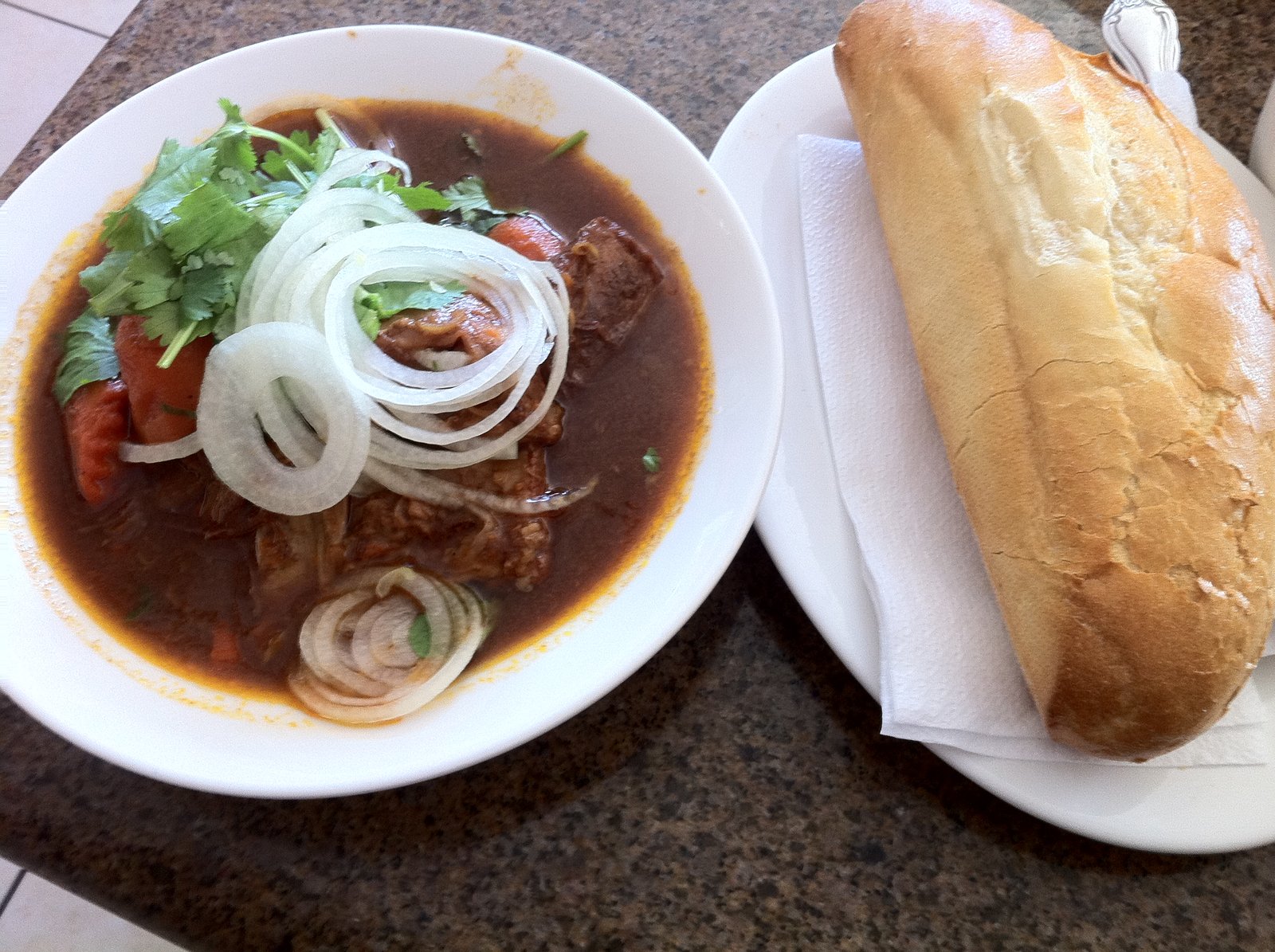 My favorite item from Lucky Pho -the Bo Kho- beef stew, which is also Kirk's favorite version. Having tried Bo Kho at just about every restaurant in town, I crave the version here – wonderfully flavored gravy covering tender tendon and beef chunks and soft carrot served with a hot, airy thin crispy crusted bahn mi baguette.