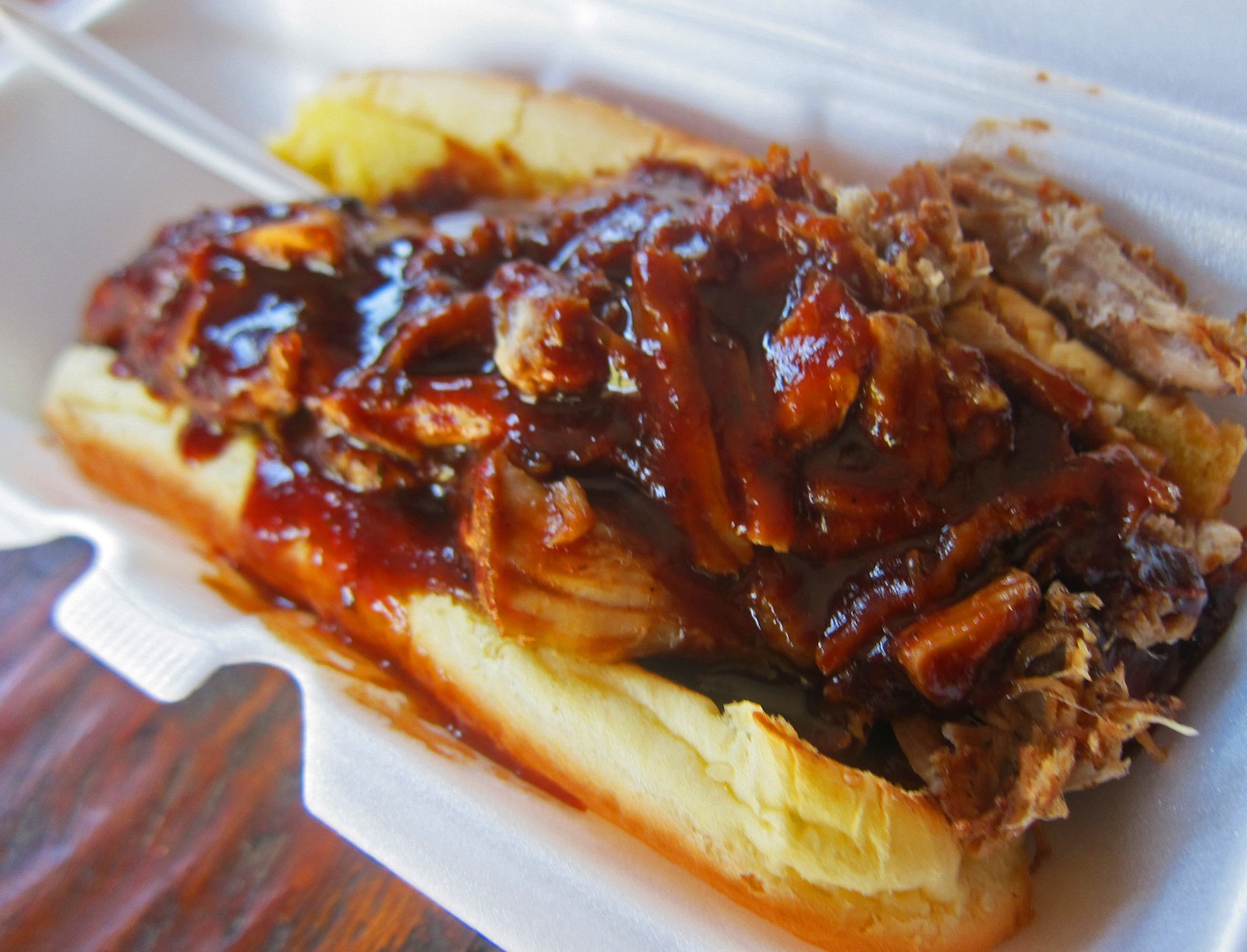 The pork was quite moist, but I had a hard time believing it was really smoked based on the mild flavor. The sauce was too sticky sweet and what seemed molasses heavy for me……