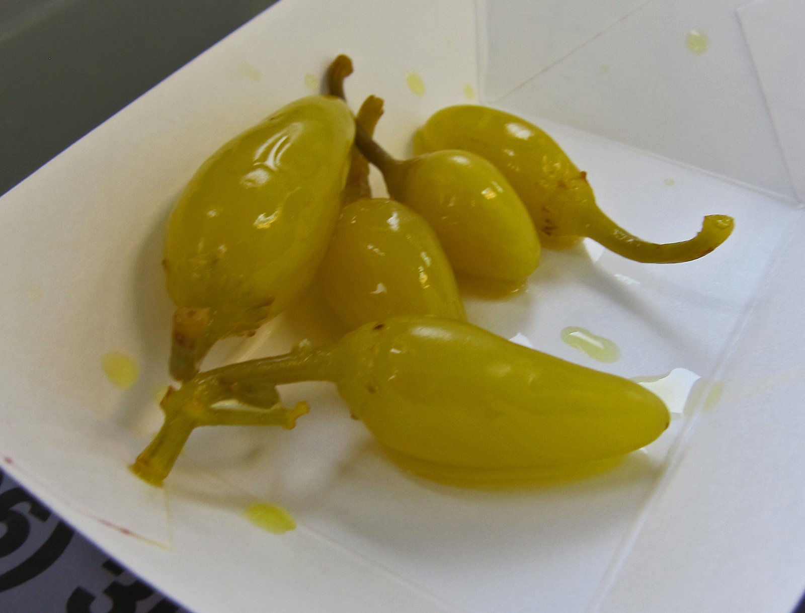The young lady at the counter was really friendly and told me that they top the chili burger with pickled cascabel chilies and chipotle cheddar. She was very nice and even gave me a little tray with some extra chilies in them. Funny, these reminded me of the bottled Del Monte Chilies I used to eat when I was a kid.