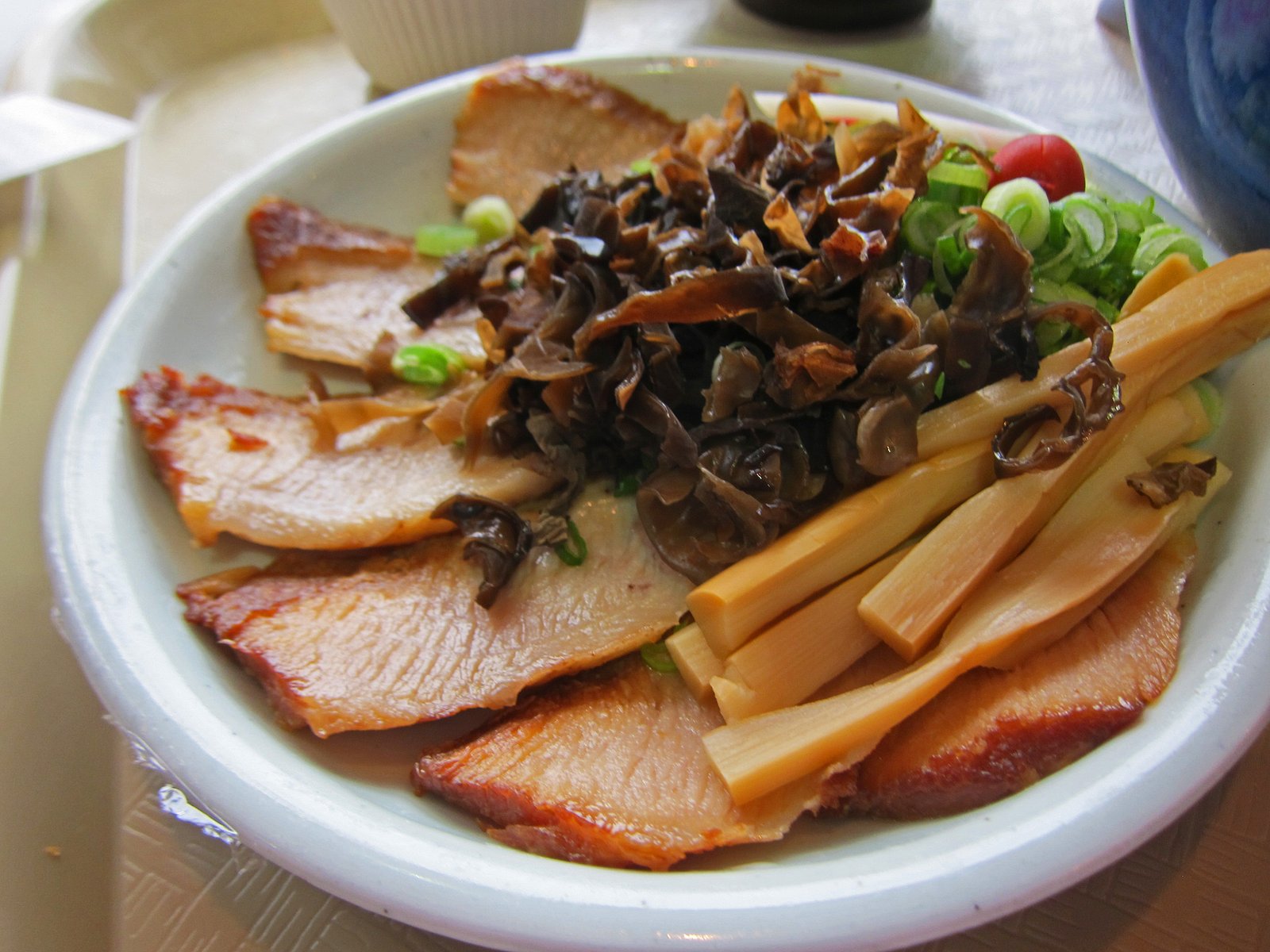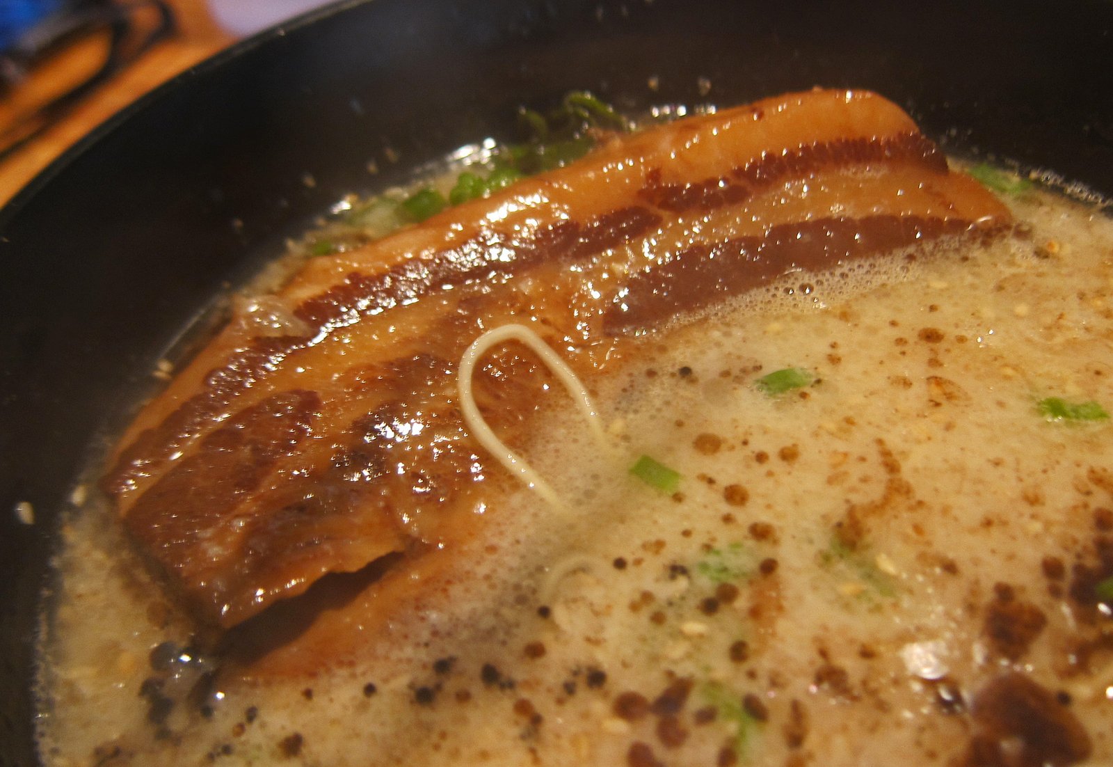 The piece of charred lean pork, tasted like charred lean pork. The noodles were perfect and this wasn't nearly as salty as what I had before, though still pretty high on the sodium scale. The broth has some seafood tones to it as well.