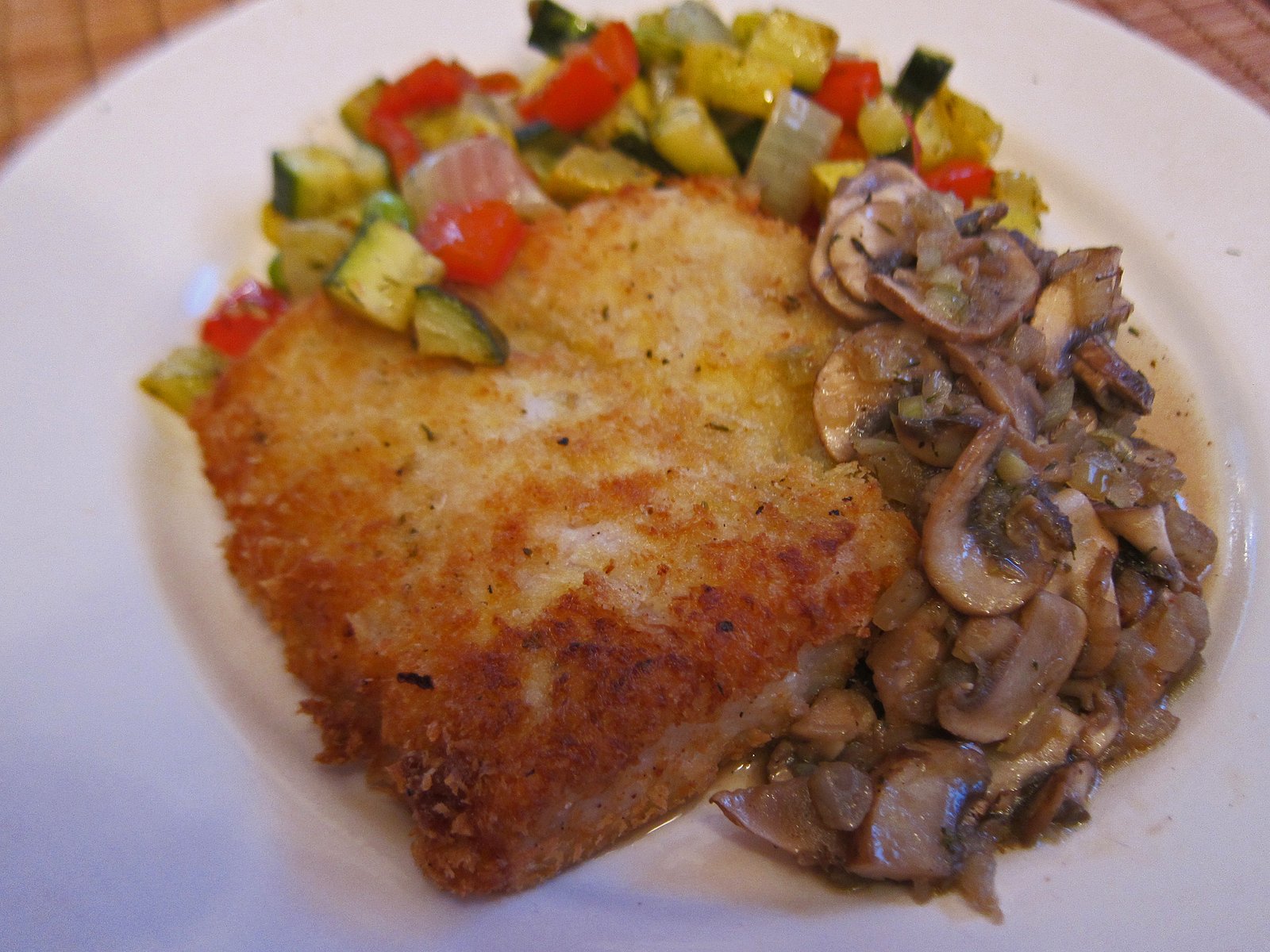 The Missus is still lovin' Her fish….here's a Pan Fried Hake with Dilled Vegetables and Marsala Mushrooms.