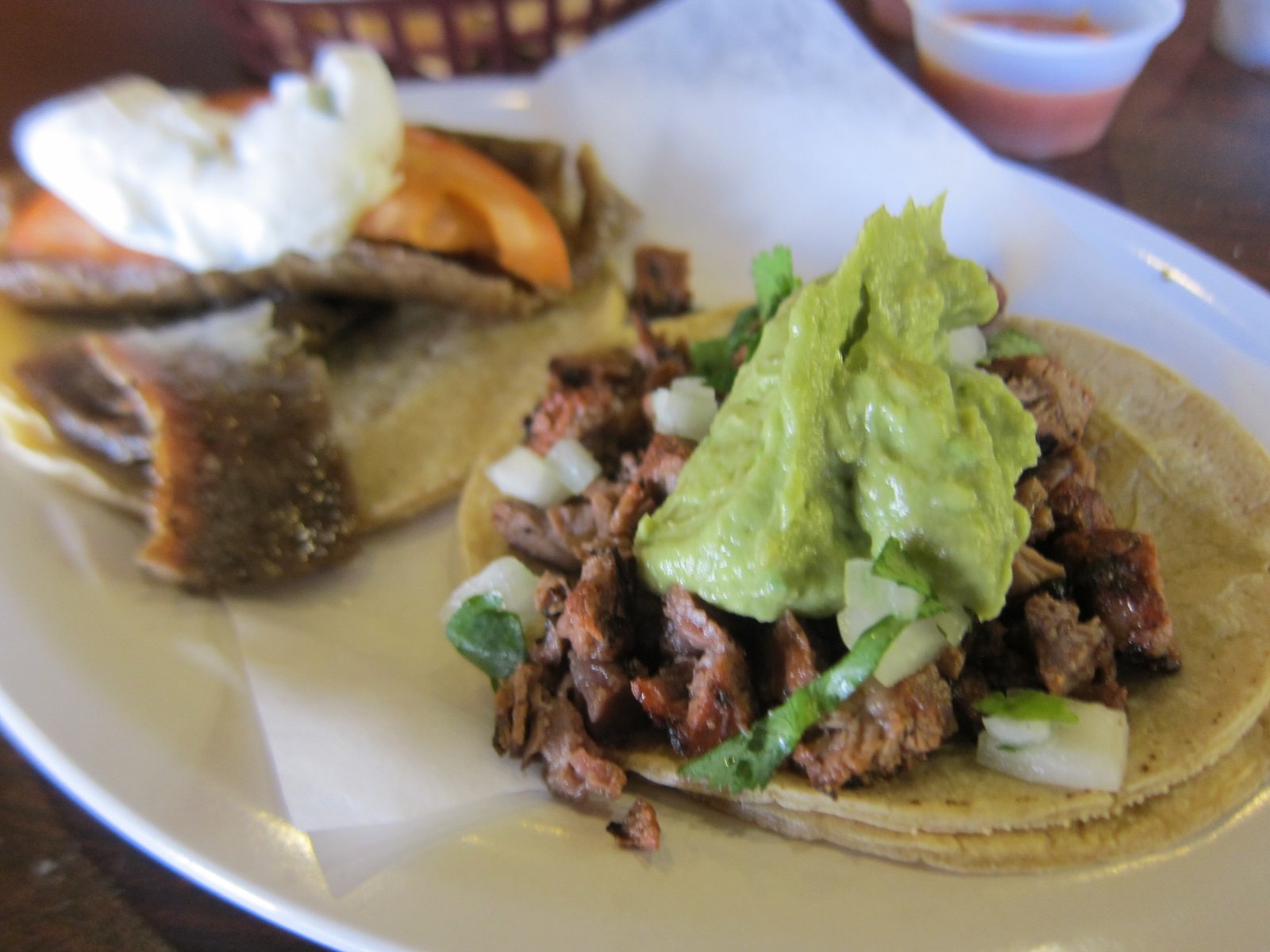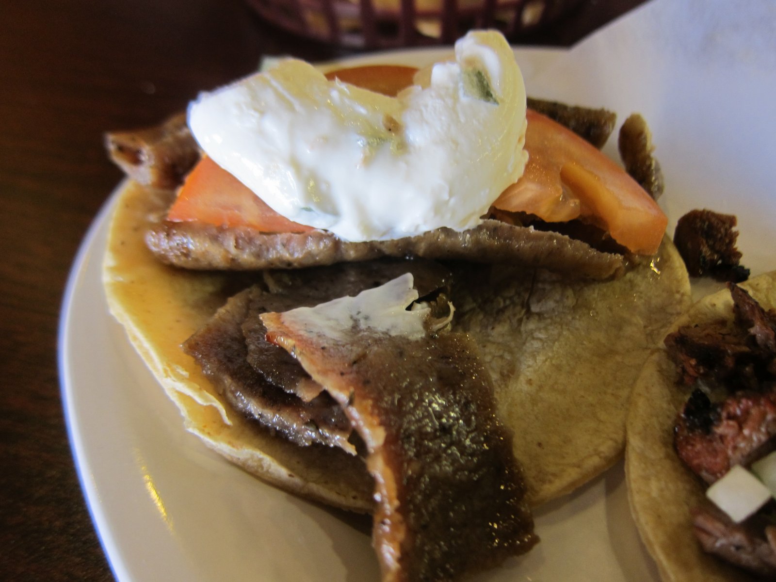 It was some very dry gyro meat on cold tortillas, topped with a tasteless under ripe tomato slice, topped with a sorta-tzaziki sauce that was too thick. Man, this was just plain bad.