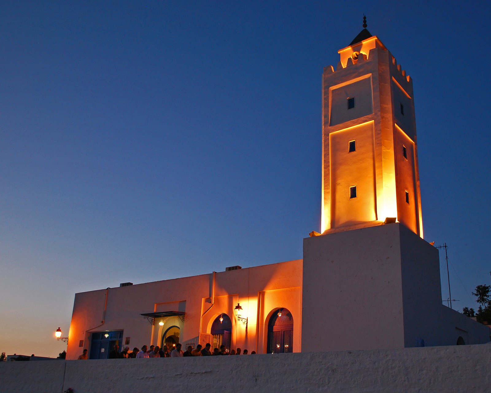 Meanwhile, right across the street, it was time for prayers at the Mosque.