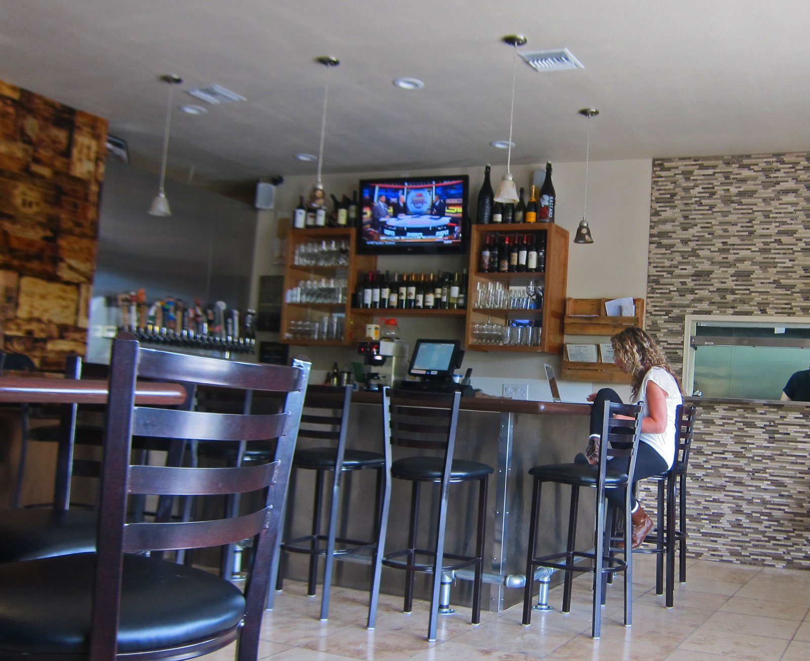 The interior was clean, bright, and spacious and looked nothing like the taco shop that was formerly at this location. The menu was a bit odd; Med/Middle Eastern on one side, Burritos on the other. There were several beers on tap, most of them standard local brews. I found the combination of all three kind of confusing….was this a bar serving Mediterranean food, or a Med-Mex restaurant featuring beer and wine. Throw in the hookah room in the back, add ESPN running on all the television sets and you got a Med-Mex-hookah-sports bar. The folks running the place are friendly enough. I was told they own the liquor store across the parking lot, so maybe that explains the beer and wine.