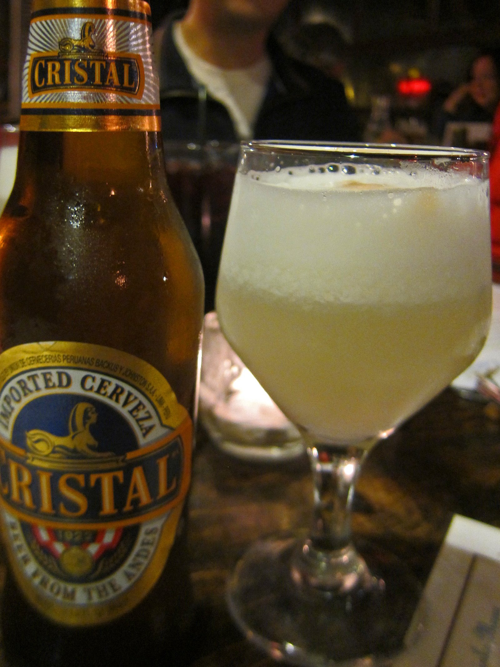 The night started with drinks; I got a Cristal, and the girls Pisco Sours. Which took me back to the musty bar of a hotel in Lima Centro. It was a nice way to start a meal.