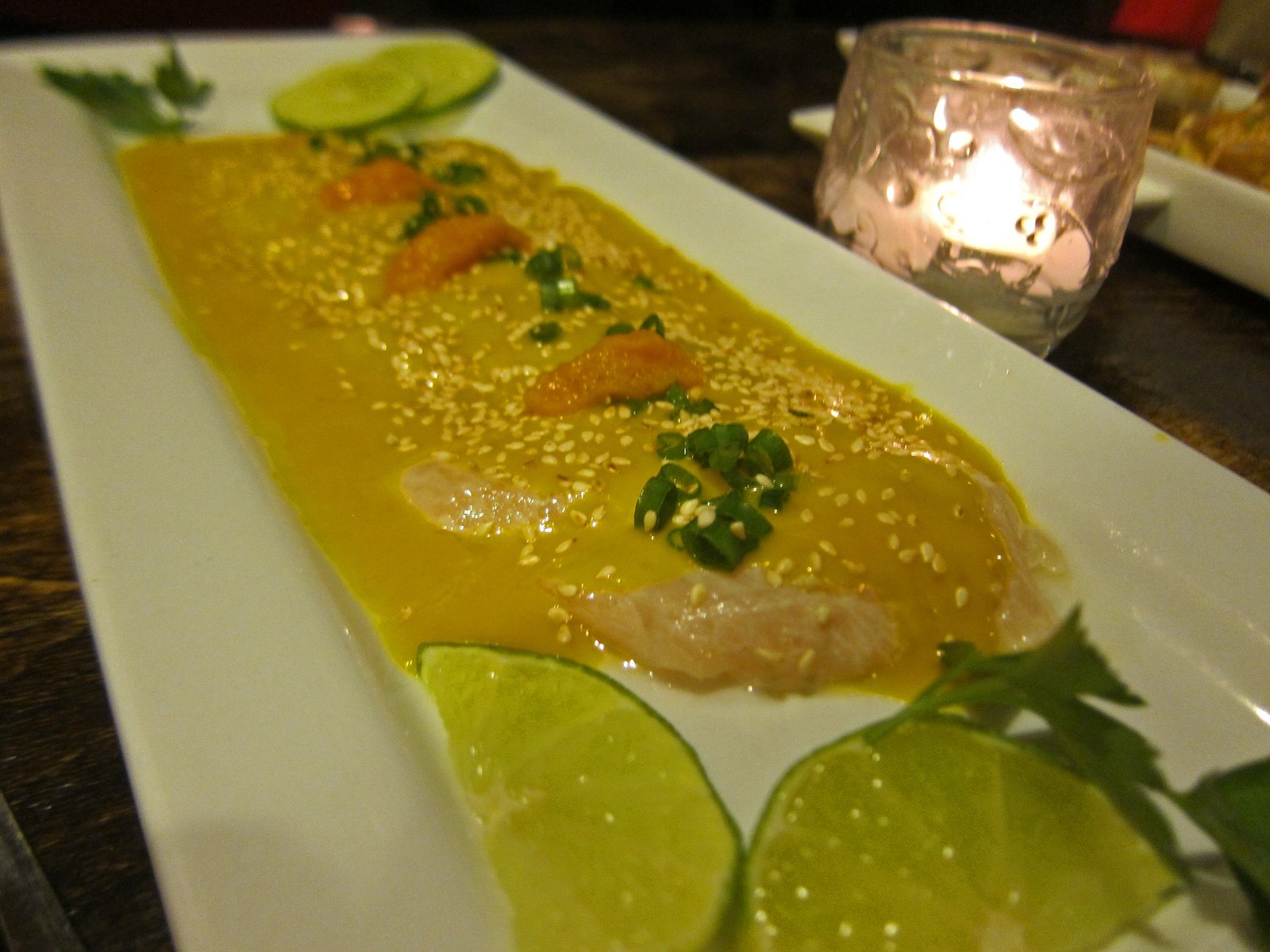 There's always a sense of adventure in ordering tiradito, a dish often credited to the Nikkei Perujin, the Japanese who had immigrated or were born in Peru. Every version I've had was different; from the fantastic, full flavored, and wonderful Tiradito en Crema de Rocoto I had at El Fayke Piurano in Central Lima, to the garlic and lemon tones of the Tiradito Alfresco at Alfresco in Miraflores, it can be an interesting ride. This fish in this version was cut thick, almost like a tweener, the thickness of hirazukuri, but at an angle like usuzukuri. I've found that my favorite versions of tiradito are when fish is cut in thin strips, or thin like carpaccio. This was a bit too thick for me. The sauce was almost a weird tropical-asian incarnation, mildly fruity, but with ginger-sesame tones. This isn't my favorite preparation of tiradito, as the flavor just didn't keep me interested.