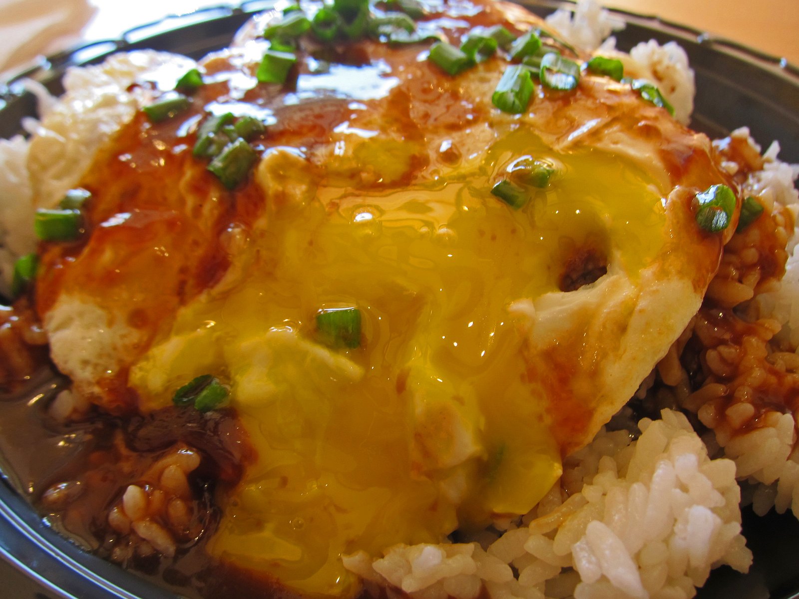 Perhaps I should call this a "petite loco"…….but I guess "small crazy" sounds kind of strange, as if loco moco didn't sound weird enough already. The woman who came out of the kitchen was very nice, telling me hello and dropping off some brownie samples.