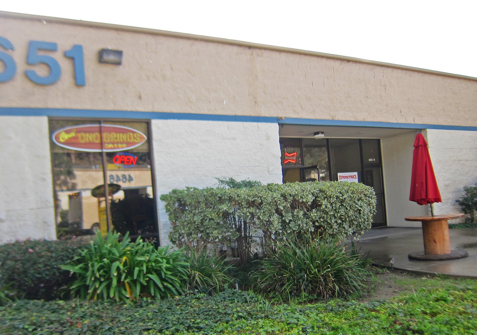 The location can be a bit challenging; off of Mission Gorge Road, head east on Mission Gorge Place in sort of a business park area. Once you go down Mission Gorge Place a bit you can't miss the sign….unless it's not out. Then it just looks like one of hundreds of business strewn around the area.