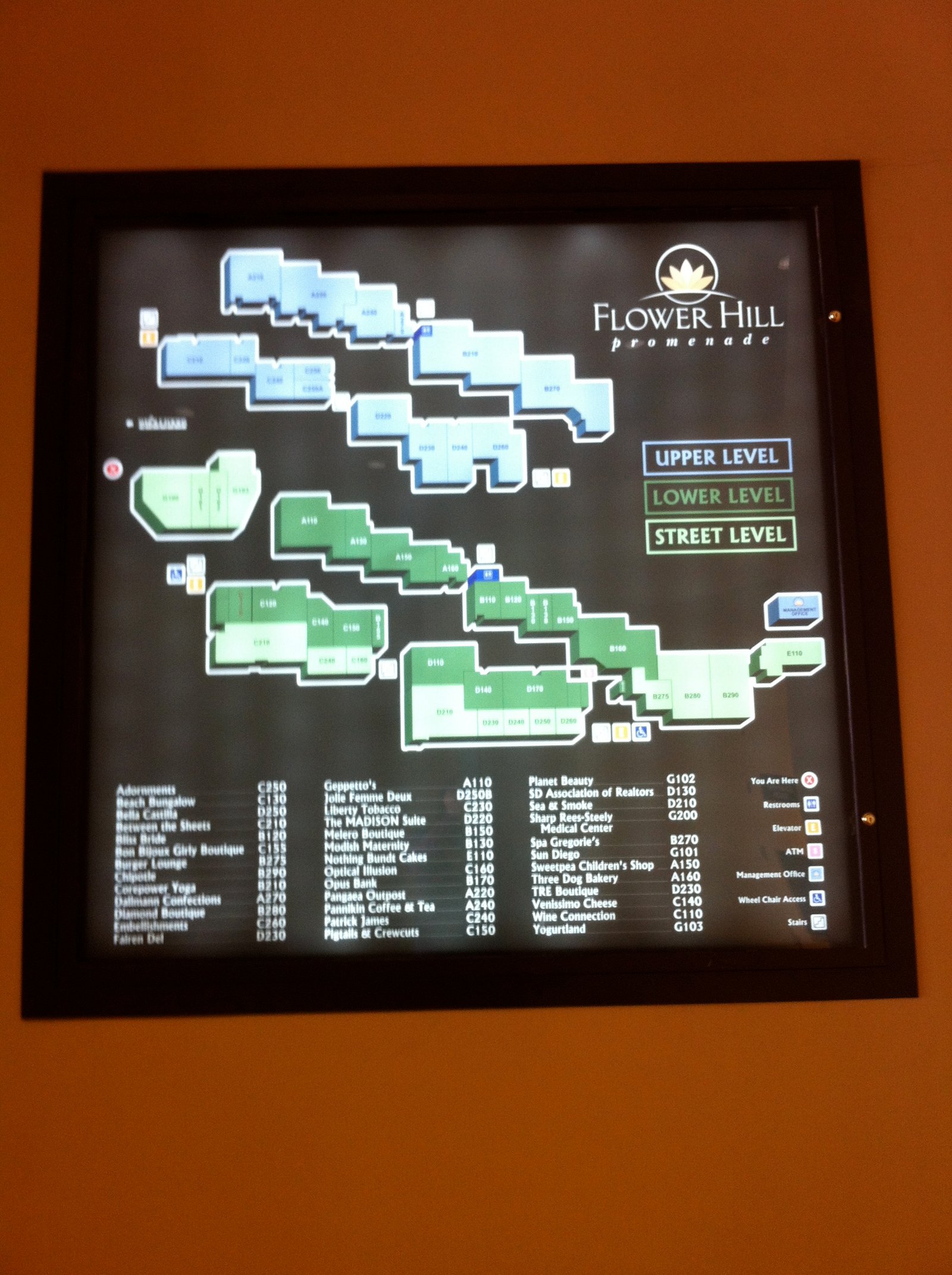 After reading about Kirk's post about Whole Foods Market in Hawaii, The Mister and I were curious about 'our' location and when we drove to the La Jolla location, saw it was being remodeled; the parking lot was a mess and signs about a grand reopening in a few weeks were everywhere. We jumped back onto the 5 and headed North, knowing a new Whole Foods had opened at the Via de la Valle exit -the same exit that you take when going to the Del Mar Racetrack. Signage there indicated '400 additional parking places behind Whole Foods', so we drove into Flower Hill Promenade and found the new parking structure. It was practically empty.