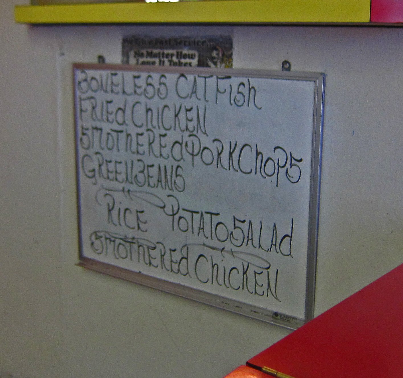 A couple of things you ought to know about Sister Pee Wee's, the place consists of a single counter, with maybe ten chairs or so, it's cash only, and if you want to know what Sister Pee Wee is serving, you need to check out the grease board, either outside, or the one hanging behind the counter.