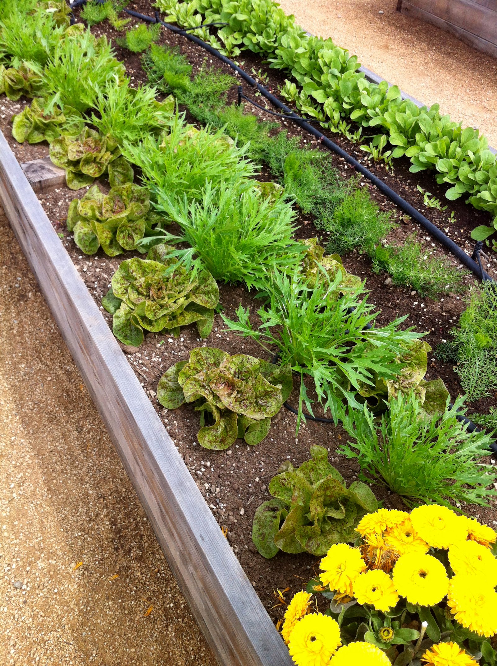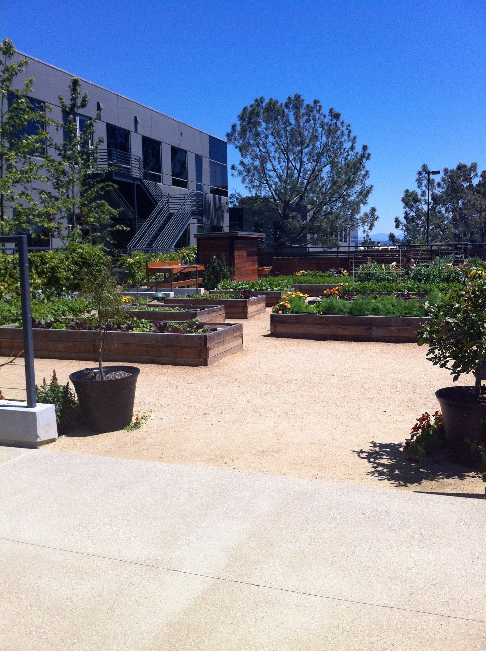 Raised bed gardens, in the middle of an Office Park (the Nautilus Life Science Campus area). These fresh vegetables and herbs will be part of your meal, picked that morning.
