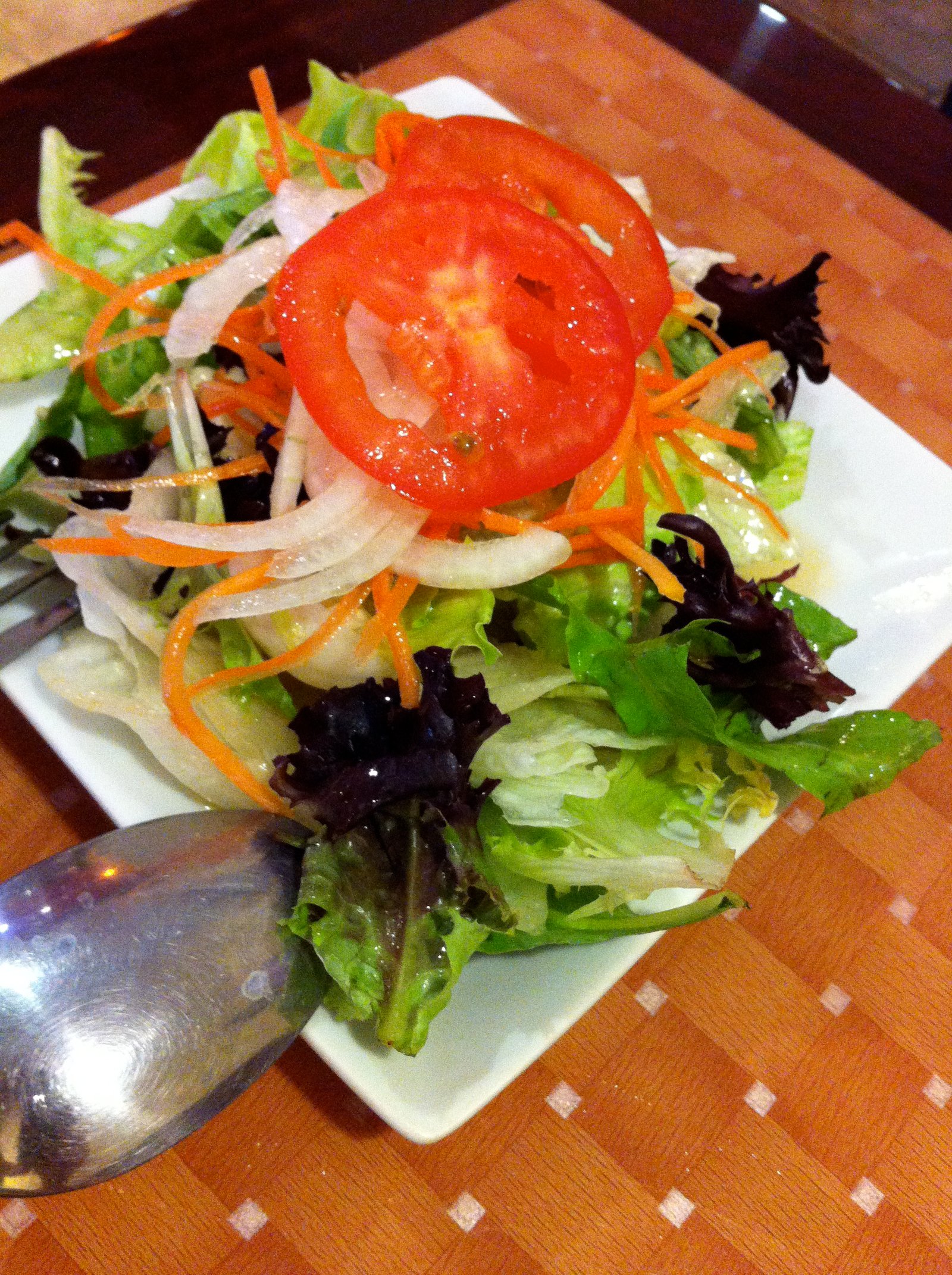 The Rainbow Salad ($12.95) is an even better version of the Rainbow Roll. No rice, plenty of all the same fish that are on the Rainbow Roll on top of crispy lettuces, cucumber and other vegetables topped with a not overpowering sesame-soy based dressing.