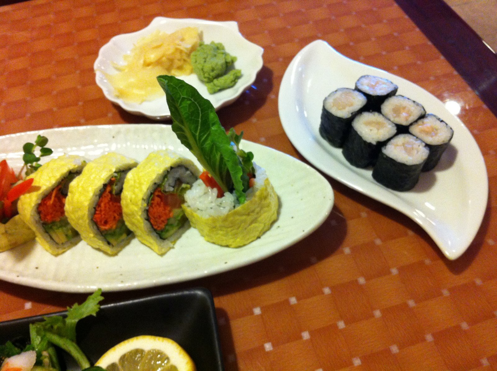 The Veggie Roll ('regular' price $8, so final price $4) and Hamachi Maki ('regular' $6 final price $3). The hamachi was unremarkable, the Veggie Roll I will get again. There is the 'inner roll' that is wrapped with seaweed, a thin layer of good sushi rice and the final outer roll is wrapped with soy paper. I liked this one.