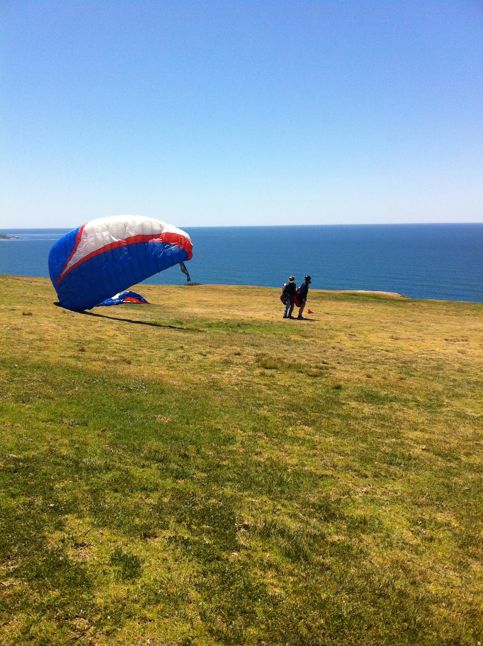While we sat on the newly re-paved patio, on this beautiful cloud free day, we watched a paraglider preparing…