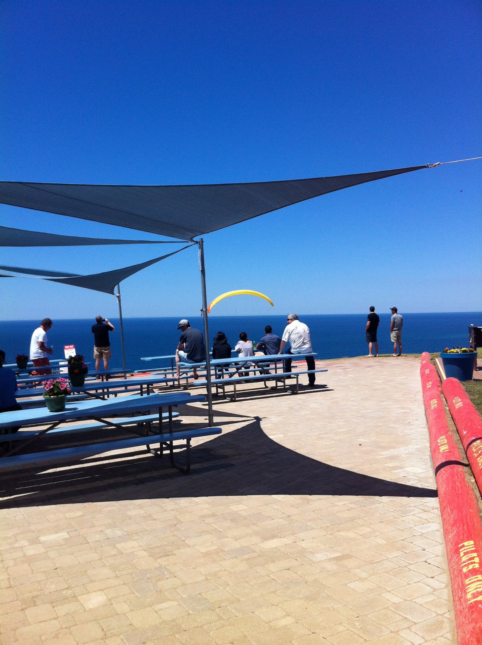 Walking over to the covered patio, there is a small store selling paragliding equipment, t-shirts, mugs and also offering paragliding instruction/buddy courses. The other store serves soups, sandwiches, beverages and baked goods.