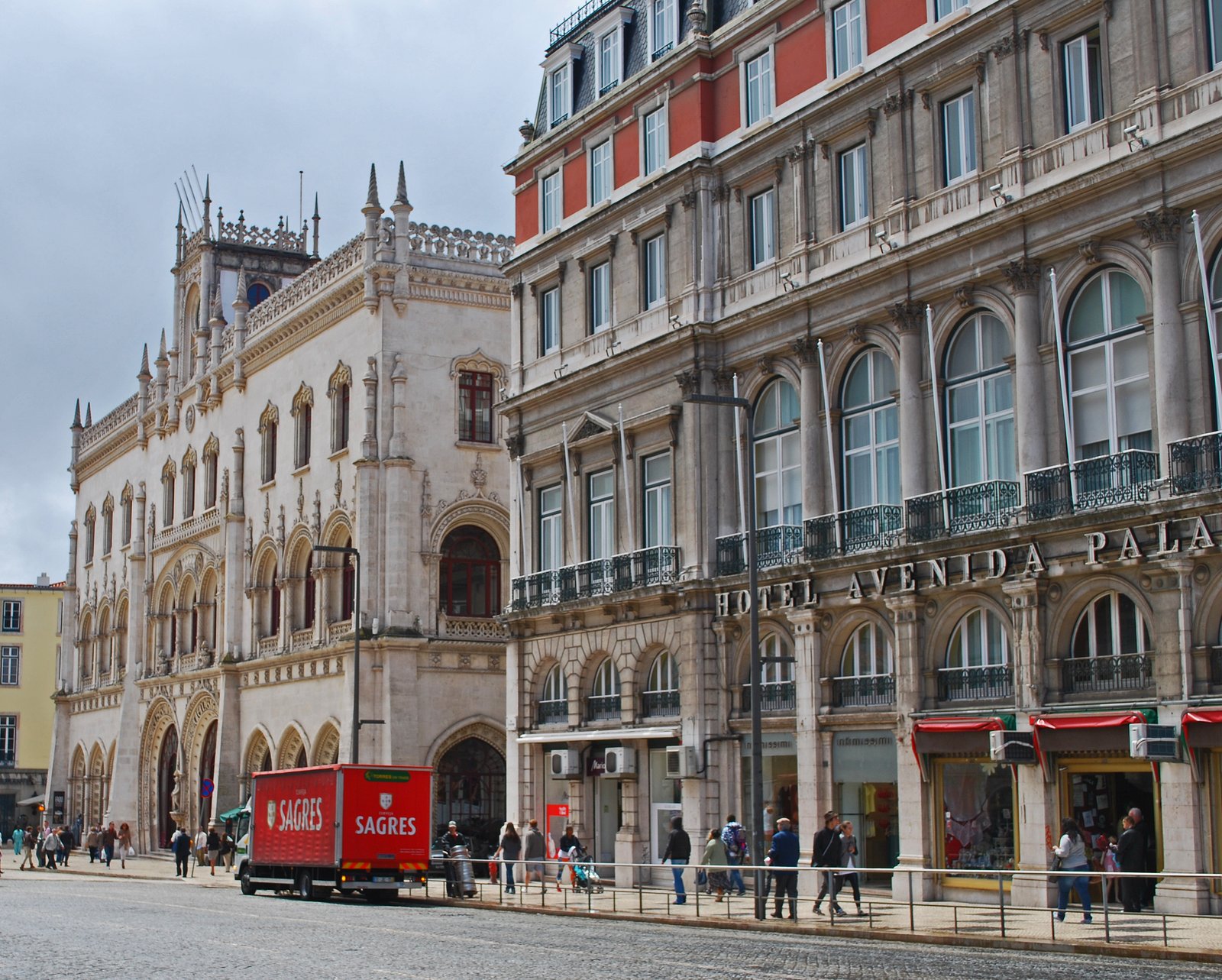 I felt so satisfied after that wonderful bifana and a beer, that I didn't even complain when the Missus decided that we hadn't done enough walking for the day. She had decided that we needed to get on up to Chiado and Bairro Alto, Lisbon's bohemian and nightlife district. Luckily, the Missus didn't insist on climbing up that hill and we just walked past Rossio Station and the Avenida Palace Hotels…..