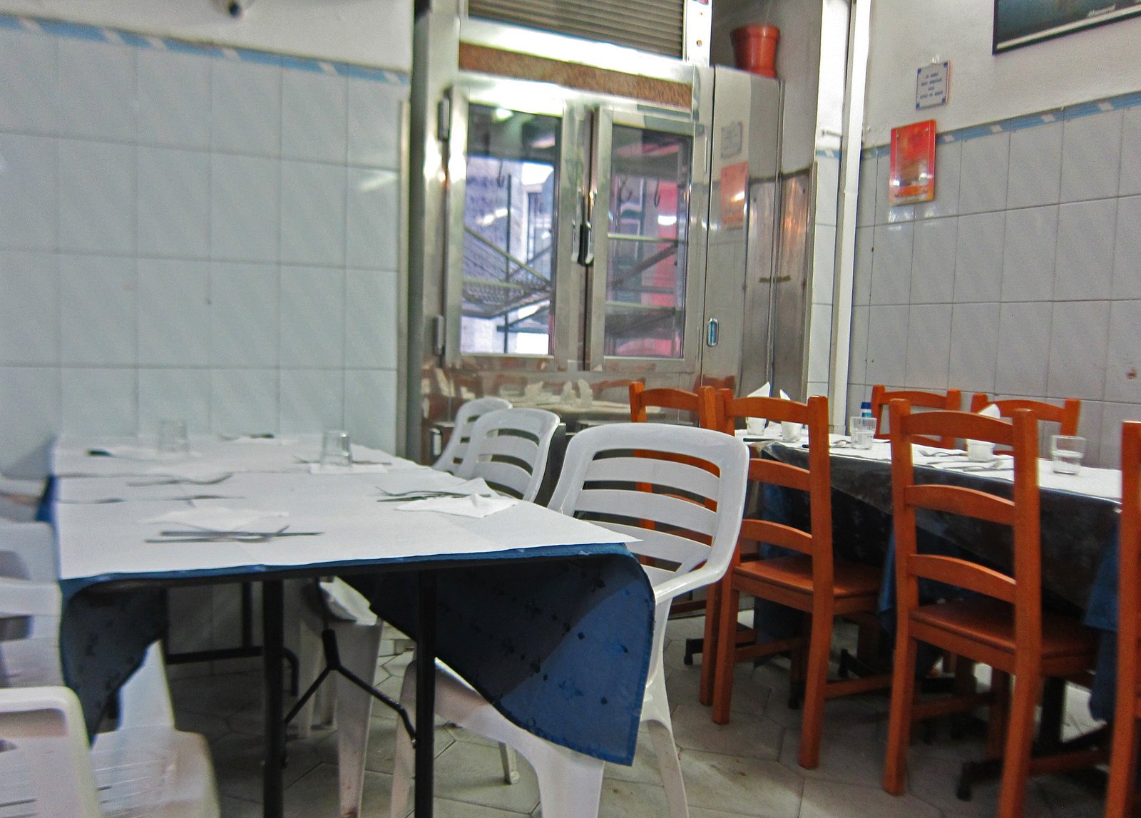 Into that doorway past the little sign was a simple tiled restaurant.