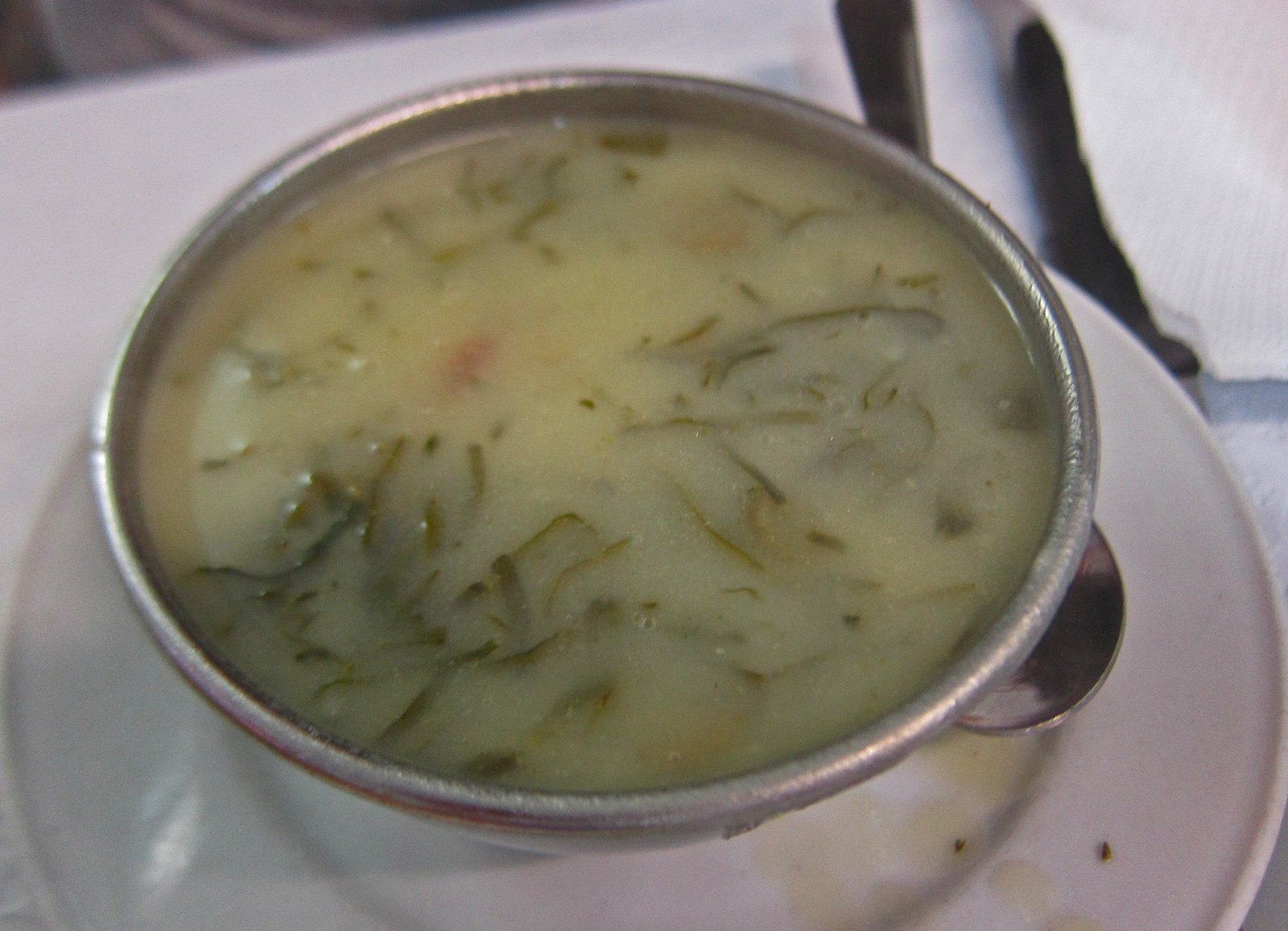 The Missus wanted to try Caldo Verde, a simple, but hearty soup thickened by potato, containing thin slices of kale.