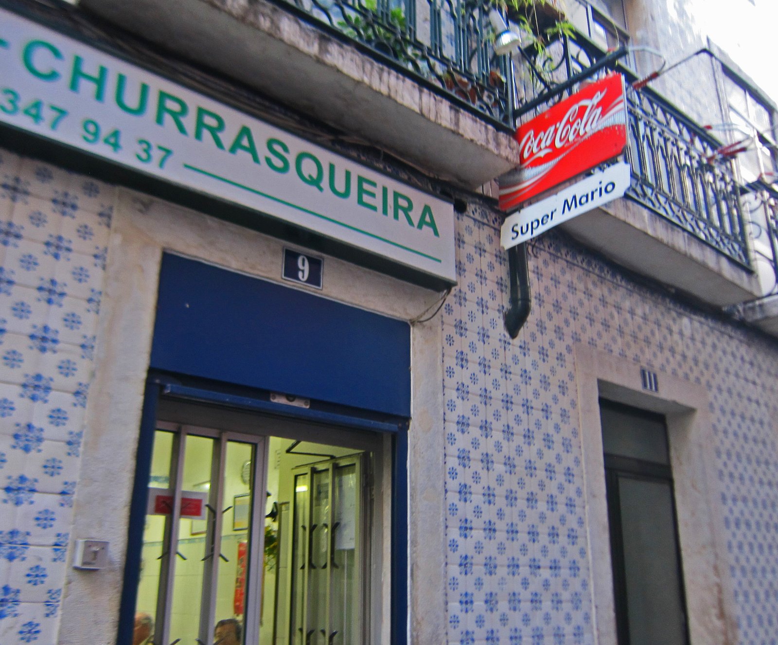Hi Billy – You do know that Brazil was once a Portuguese colony and was granted independance in 1825. Even more interesting was that during the Napoleonic wars, John VI fled to the colony of Brazil with appox 10,000 people and Rio de Janeiro was established as the Kingdom of Portugal. The ties between the two countries is complicated. Anyway, there are tons of grill houses called Churrasquerias in Lisbon. They are actually great places to eat between the hours of regular restaurants since most are open all the time. The sign is for a Churrasqueria right next to Super Mario. Shows how tiny the sign for that restaurant is.