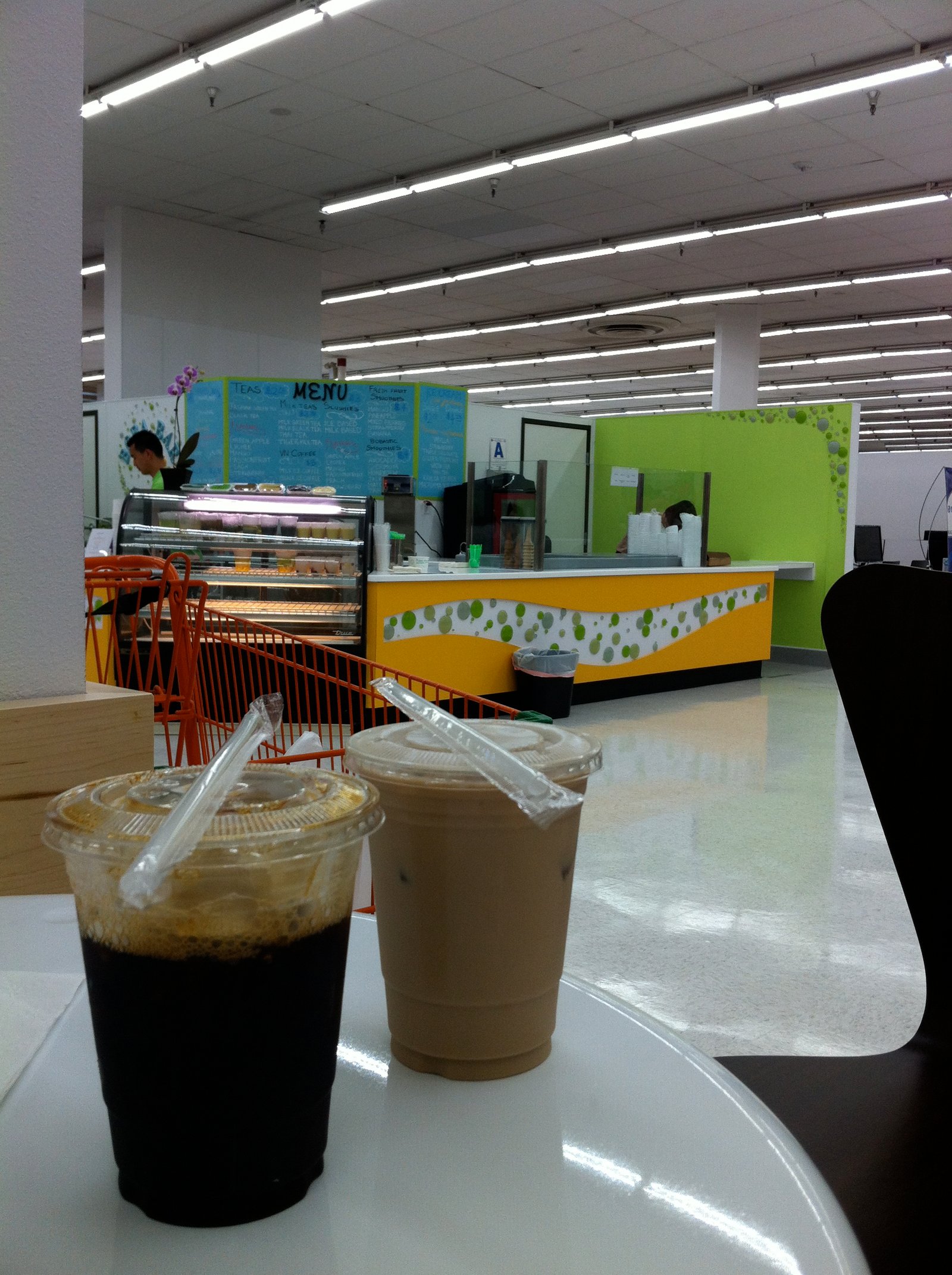 We decided to try some basics on this first visit: An iced Vietnamese coffee ($3) and milk green tea ($2.75). No boba, no syrup/sweetener/condensed milk. The coffee was very smooth and strong and the milk tea had a good tea flavor, which is the way I like it.