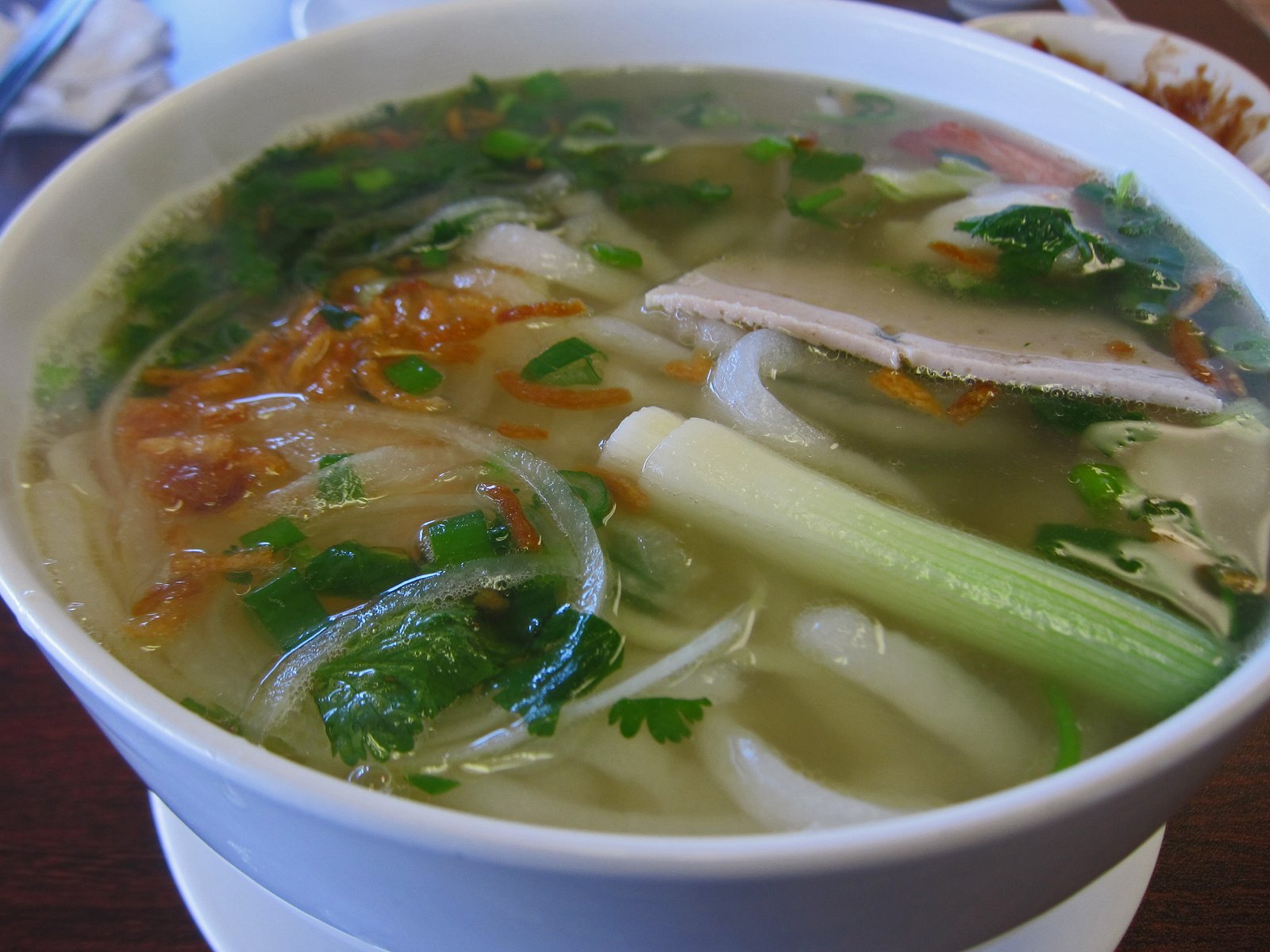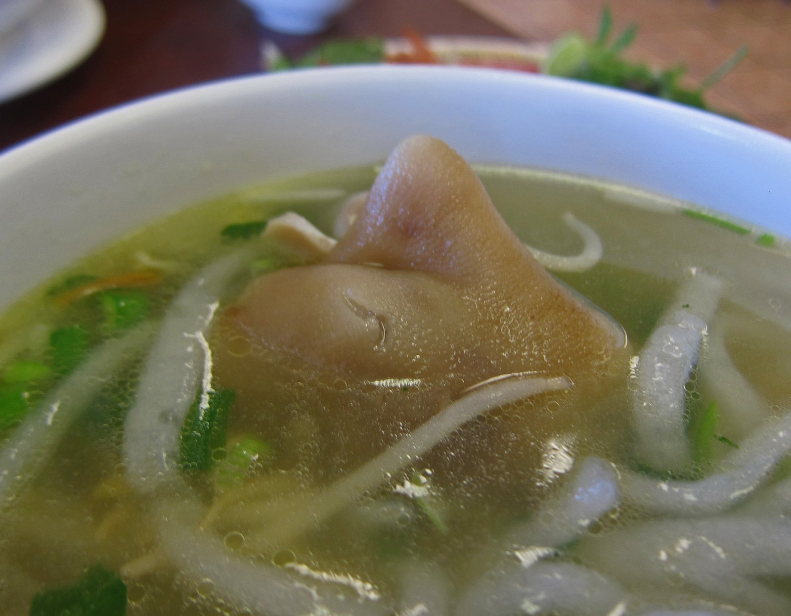 I decided to try the simple bot chien, but it was a "no go". So I went with the Bánh canh giò heo ($7) a clear broth soup with pigs feet.