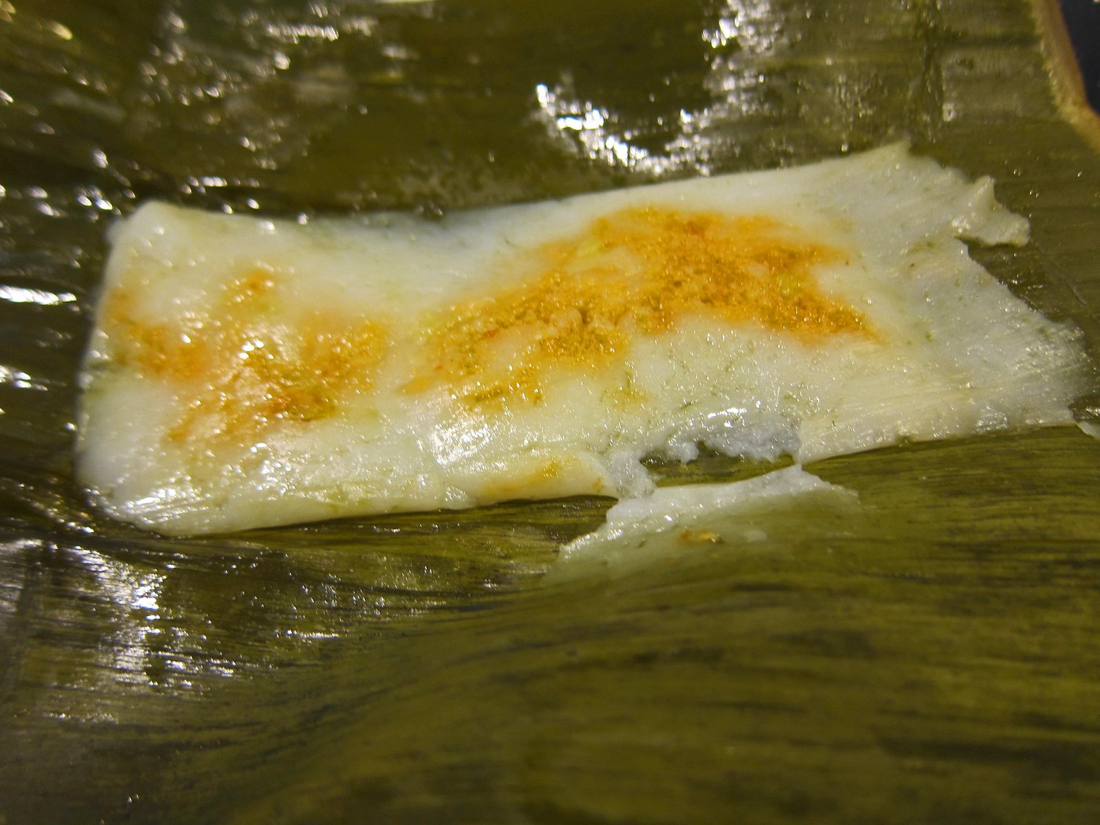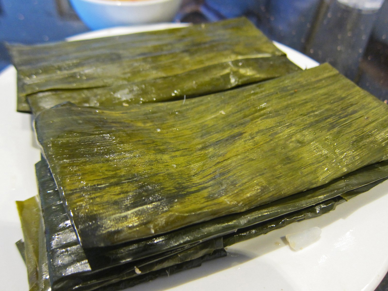You can read all about that stuff in my previous post. All I have to say about it is, that the Missus loves the rather thin smear of rice flour dough and the flavor of the banana leaves.