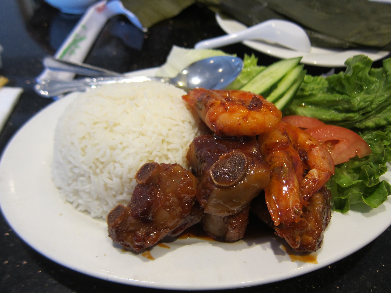 As for me….well FOY (Friend of Yoso) "TFD" mentioned the Com Suon Tom Riem….all I knew was this had rice and shrimp, but I took a flier and chanced it. This was a combination of a wonderful high – the rice was perfect, fragrant, and hot. The spare ribs, aren't really "grilled" but braised to a nice tender, but not falling apart stage. The flavor is the wonderful salty-sweet that elevates pork.