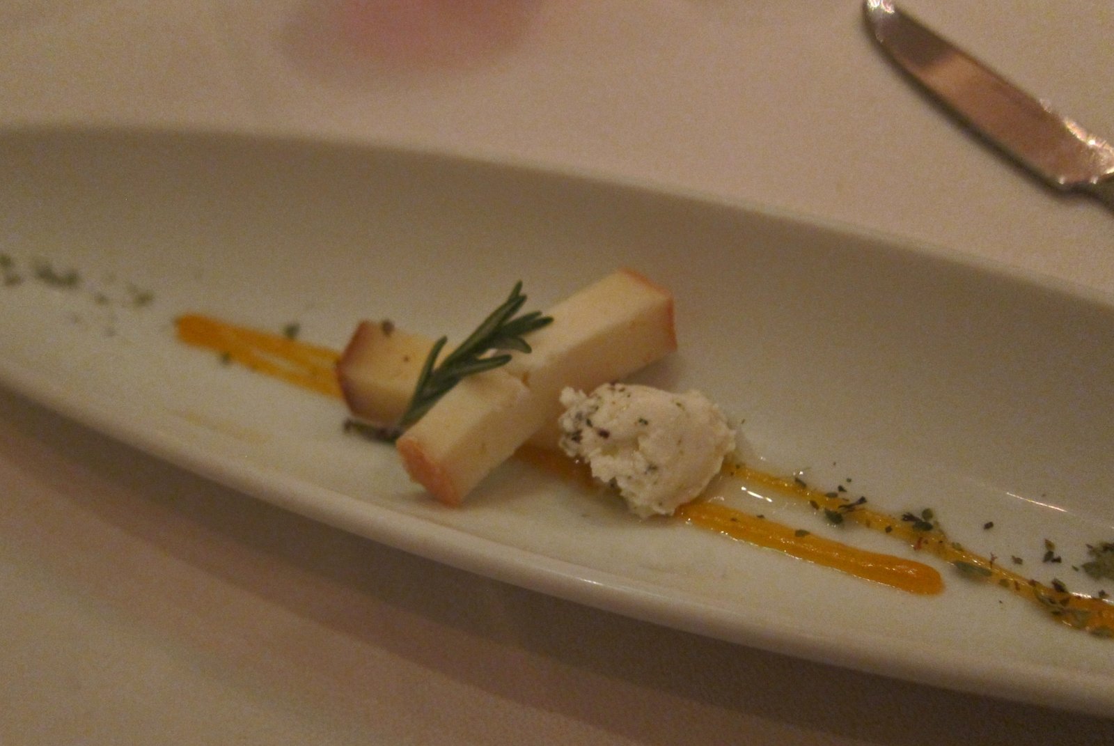 The amuse, which we were told was not "an amuse" since that is French, was a very nice pastry stuffed with wonderfully creamy and rich bacalhau. The salt cod really stood up well to this rich preparation.