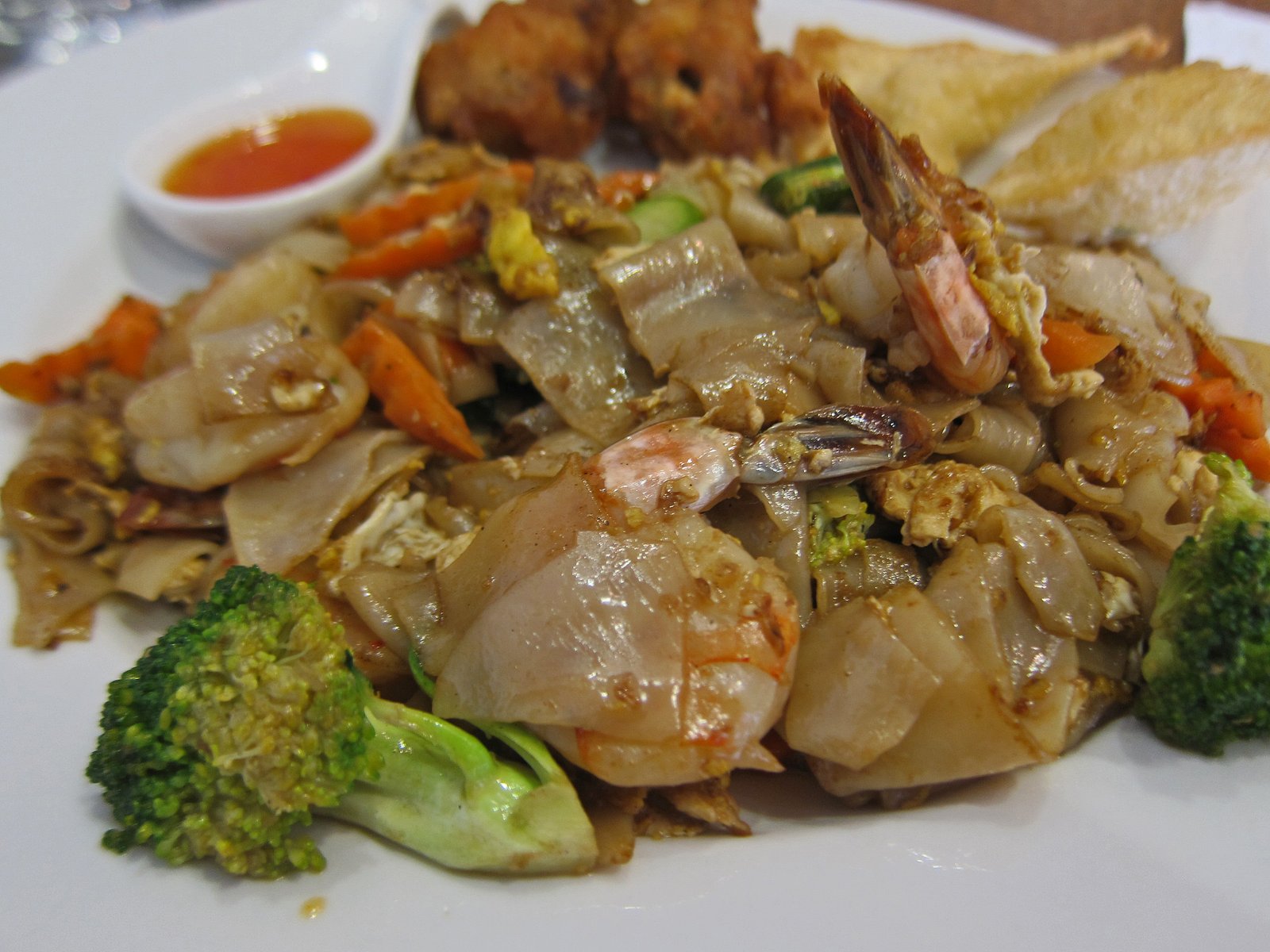 I really don't know what to say….but let me try. With regards to the shrimp, I didn't mind 41-50, which I kind of like in stir-fries, but these were overcooked and rubbery. Too long over not enough heat. There was also a bit of grittiness to them and a flavor that was edging on "off". Standard issue "Calabrese broccoli" was used instead of Chinese broccoli. The noodles were mushy and cooked without enough heat for too long (see the pattern). There wasn't enough savory, nor enough sweet, basically nothing but greasy, mushy, noodles.