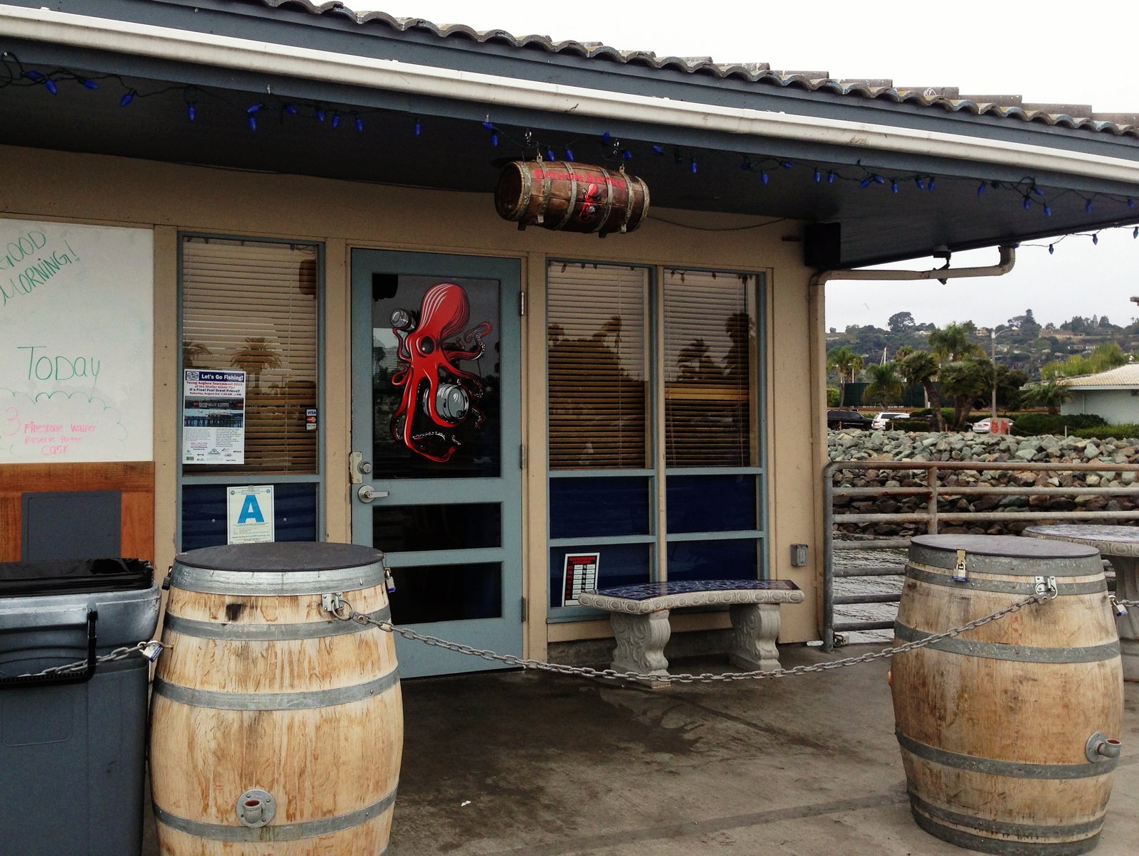 I think the location is really great, original, and quirky, as it's located on a pier, which on this morning was packed to the gills (no pun intended) with folks fishing.