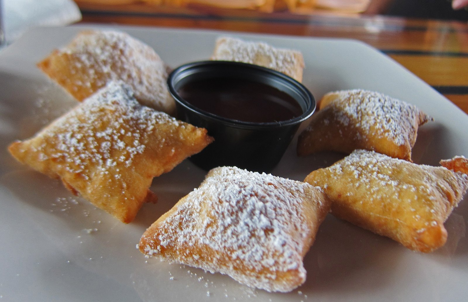 It's fried dough, with powdered sugar, and chocolate sauce…….'nuff said.