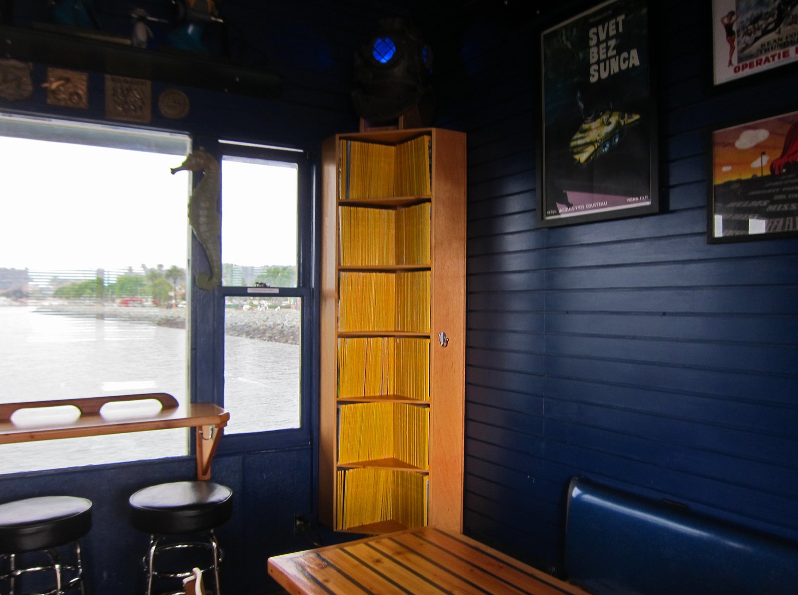 There's an actual bait and tackle shop on one side of the building…..and it's a bit of a stretch to call this a building. The kitchen look as large as the dining area, which look like it somehow holds about 20. There are a couple of tables out front as well. I loved the collection of vintage National Geographics which took me back to elementary school.