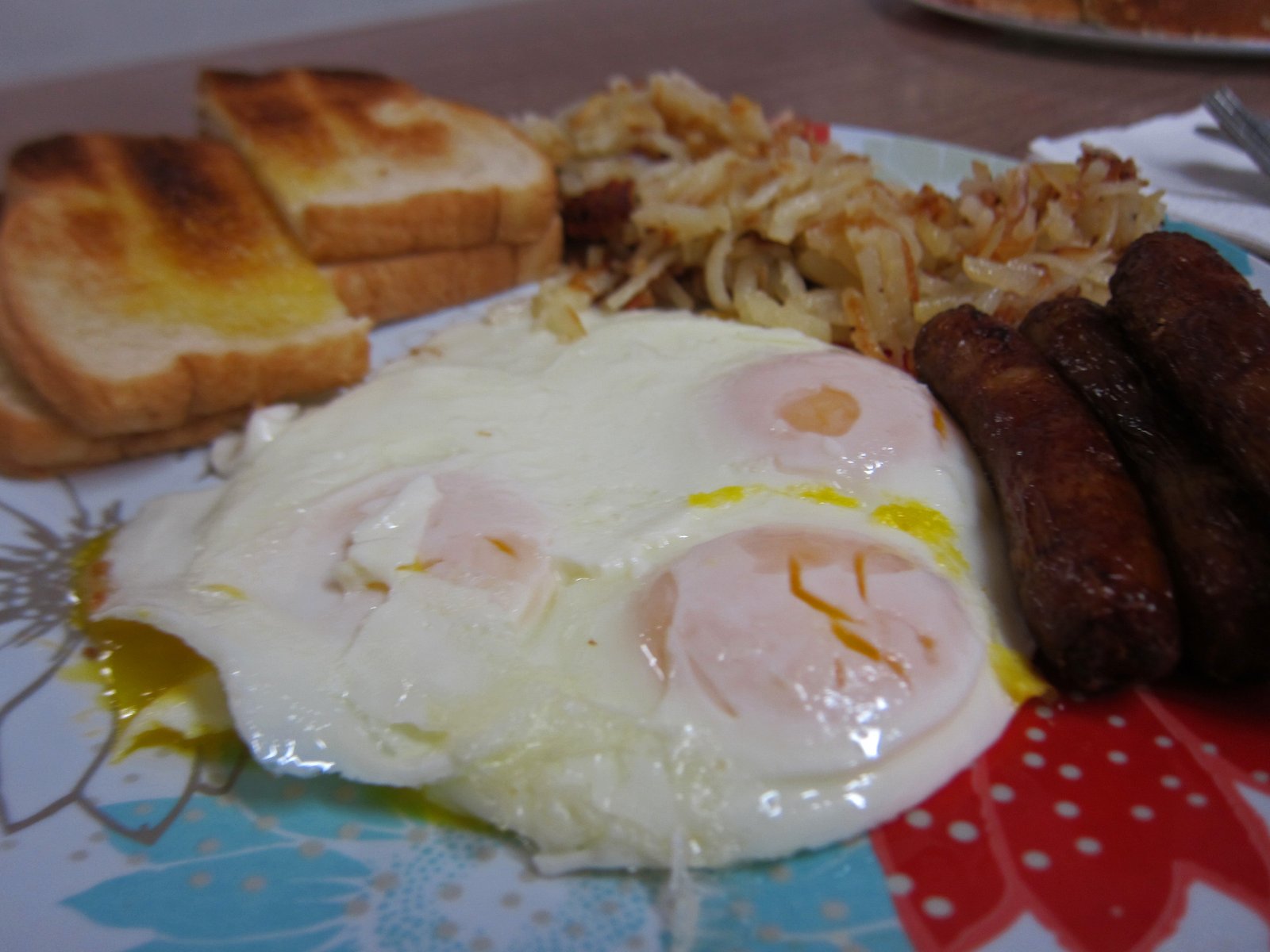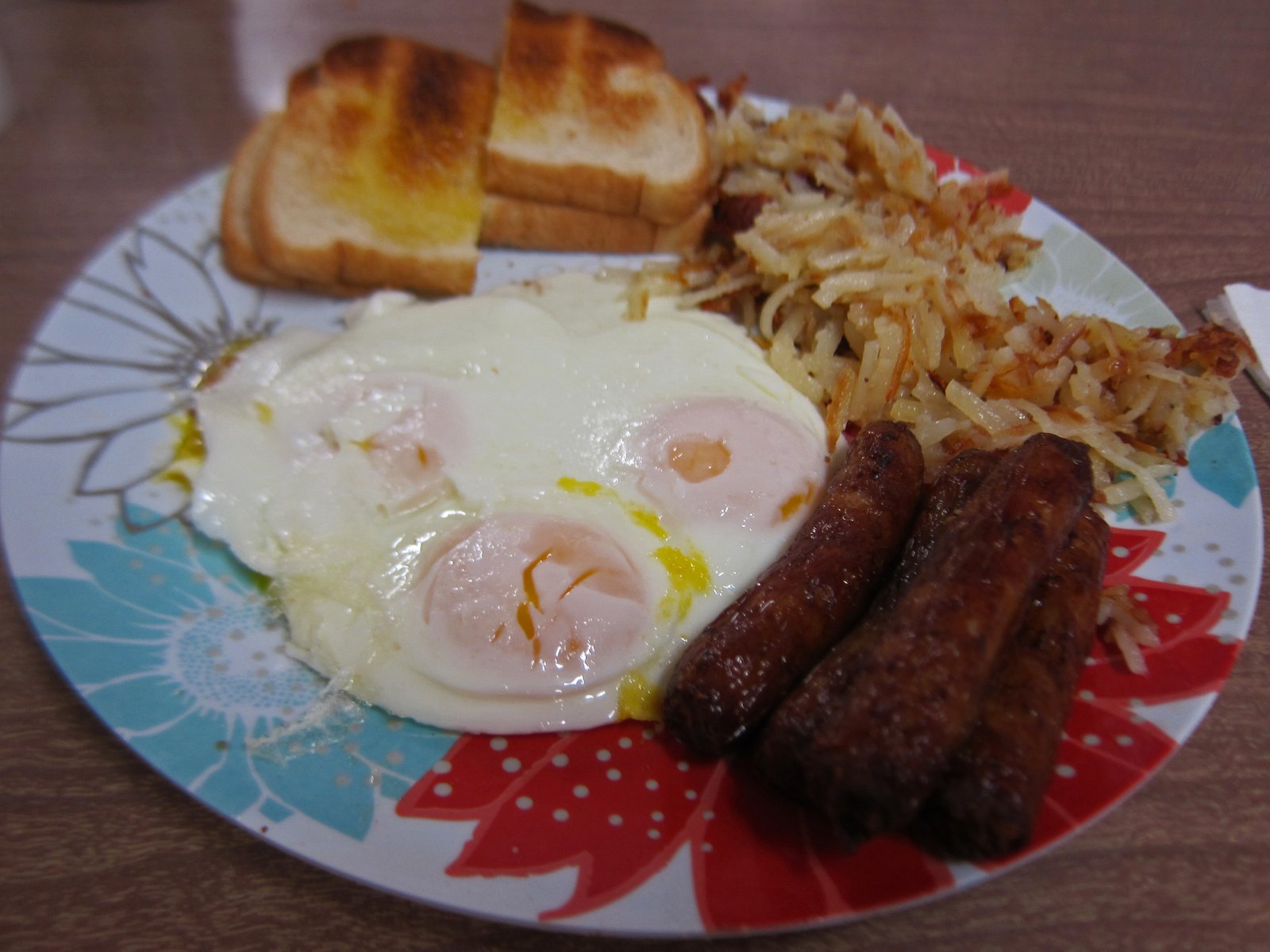 There's nothing really outstanding about the food at Lucky's. SYSCO sausages, rehydrated hashbrowns…..though he does know how to get the eggs right for me.