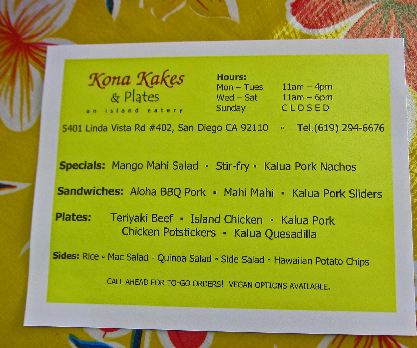 I've had the cakes from Kona Kakes a couple of times and it was quite good. So I really couldn't wait to check out the "plates" which I guess are served between 11am and 4pm Monday thru Saturday.