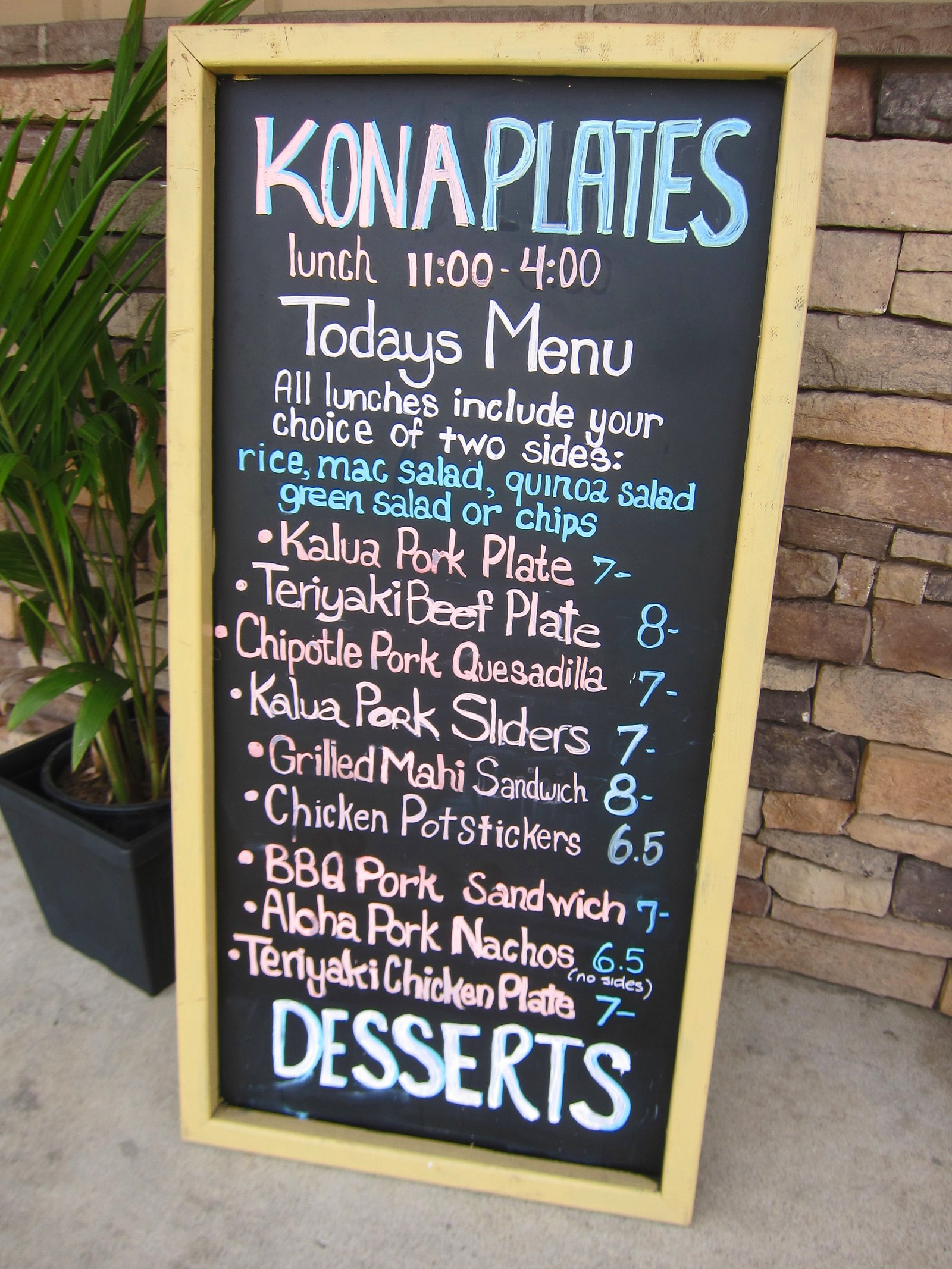 I recently saw the storefront for Kona Kakes in Linda Vista….I had wondered where they had gone to. What really got my attention was the new addition to the name….the "& Plates" part. So Kona Kakes was now serving plate lunches? This I had to check out.