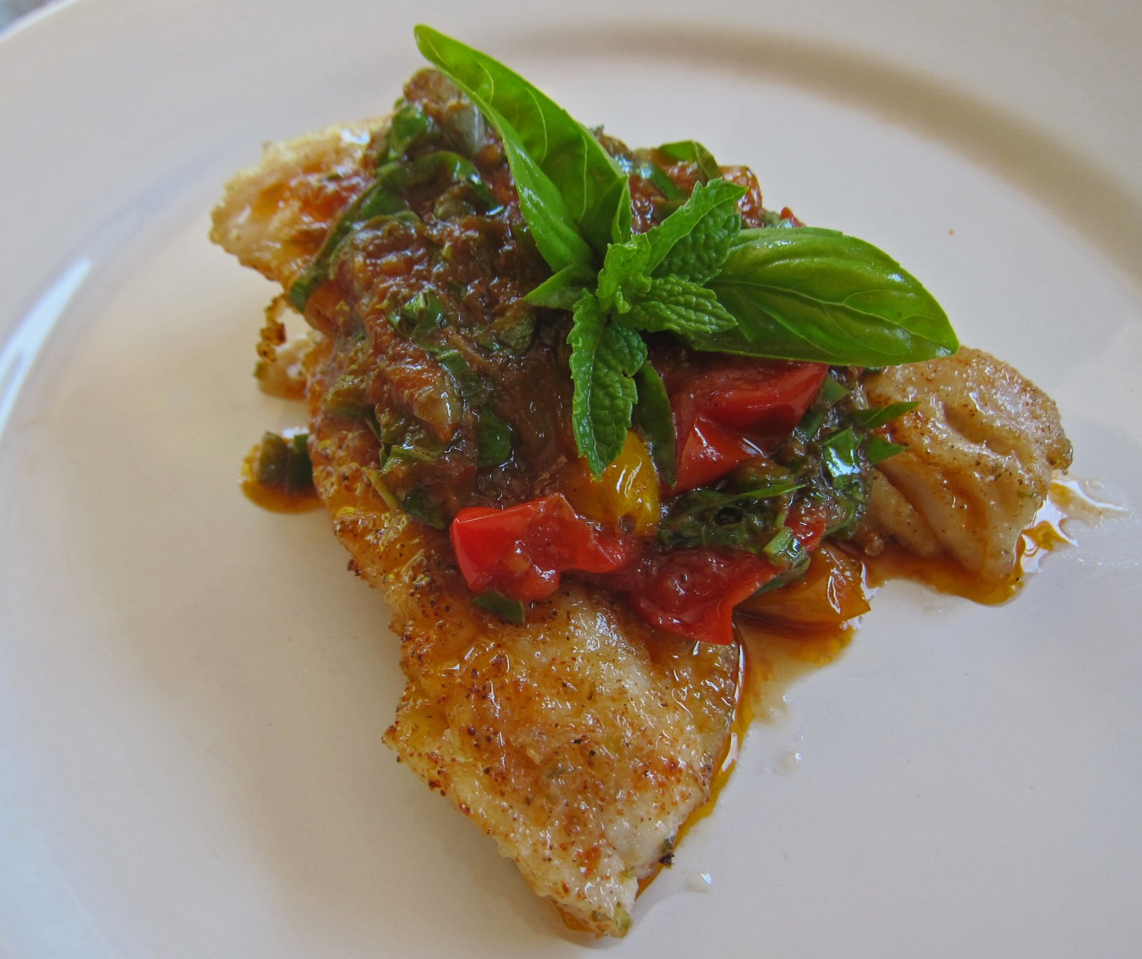 More fun with triggerfish. This one with Tomato-Basil-Caper Sauce: