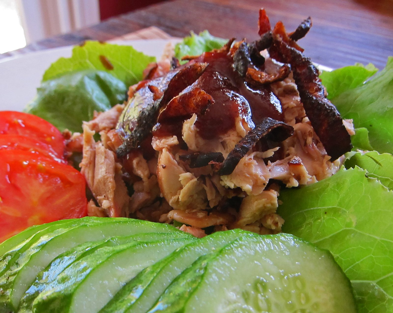 After cooling I chopped and sent Her off with BBQ sauce…..of course I saved some for me. It was a BBQ Chicken Salad.