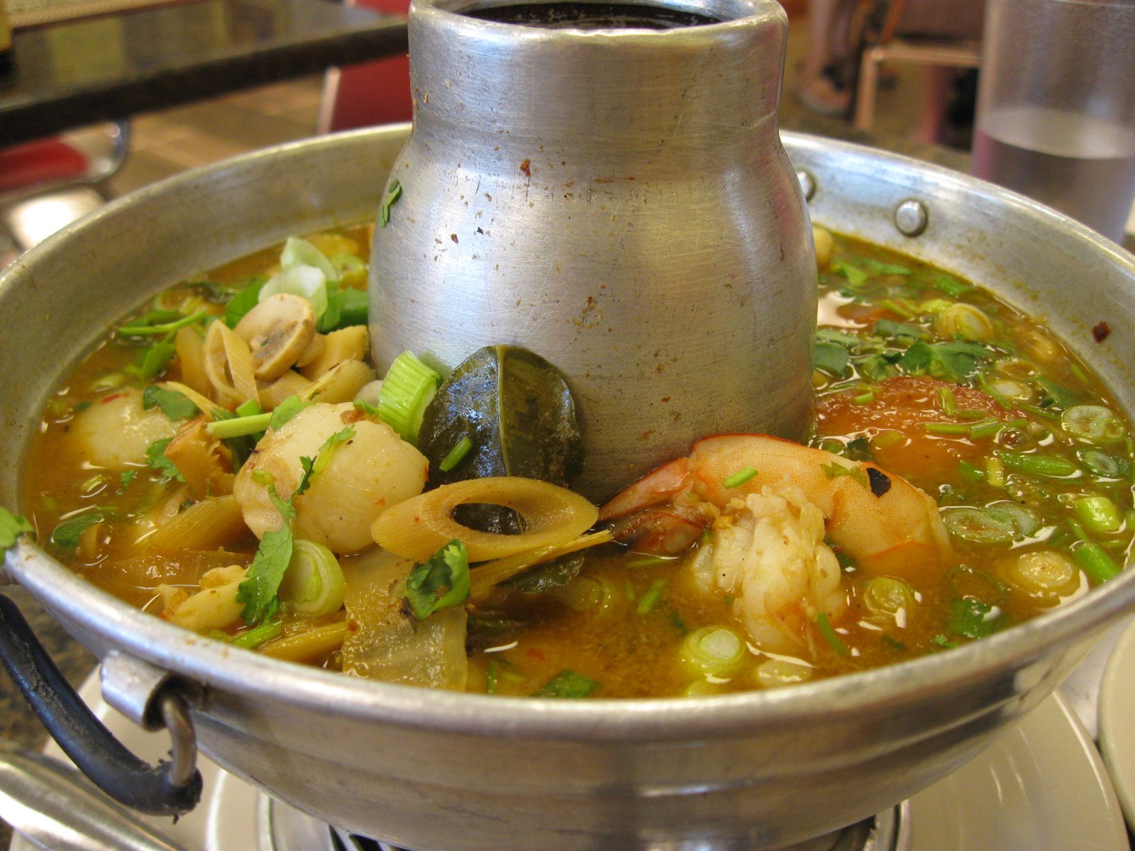 The Tom Yum seafood soup ($14) was generally excellent. I liked the range of seafood, 3 or 4 good sized shrimp, tender chunks of squid, sea scallops, and mussels (no fake krab anywhere). All were complemented by the savory funky spicy seafood broth, with tomato, chopped green onion, and various slices, chunks and leaves of Thai spices: