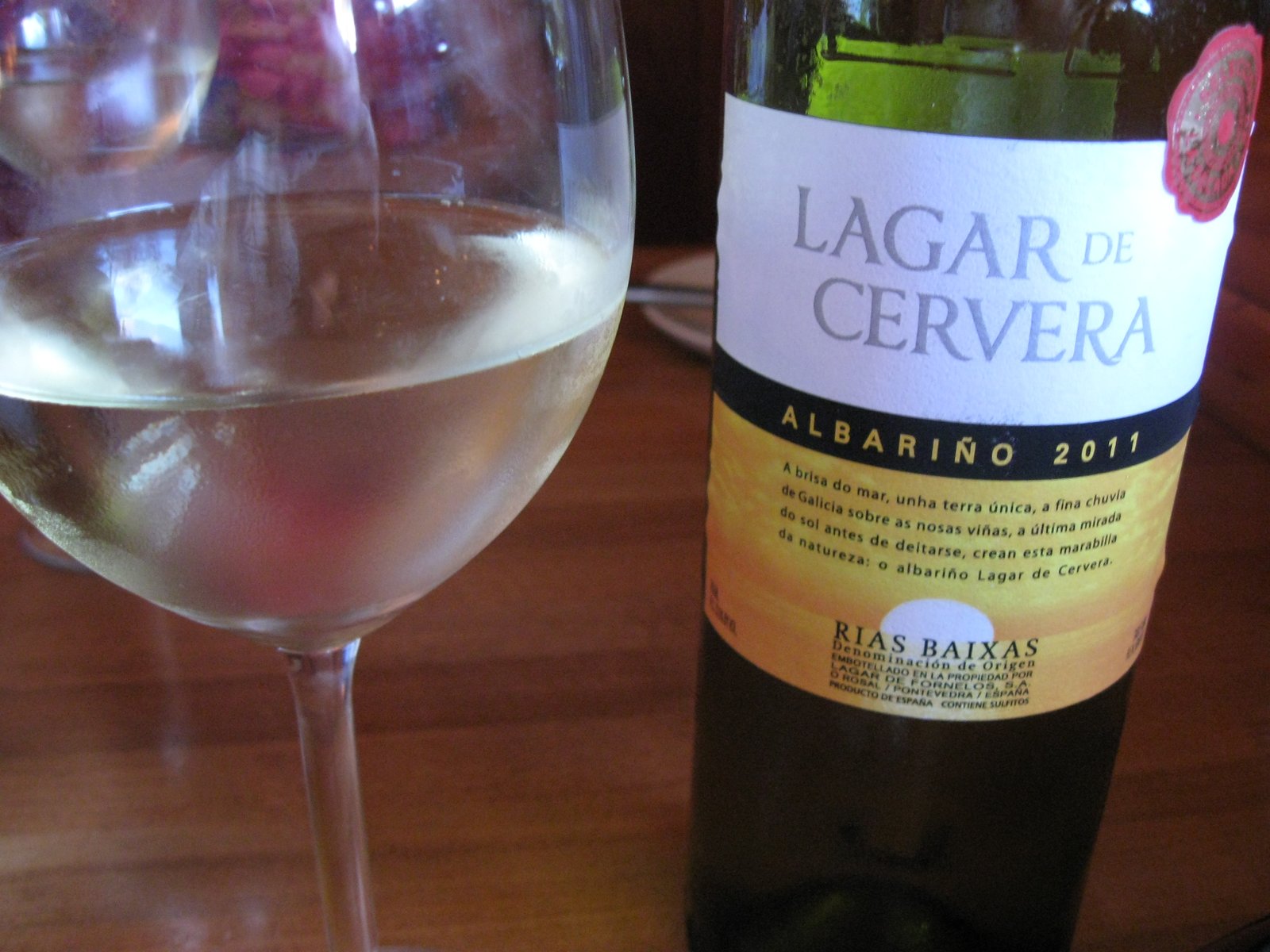 And the interior still has hard wooden tables, wooden walls, a fish counter, and very little noise abatement, making the restaurant occasionally LOUD on the busy Saturday night when we visited. Soon after we arrived, Nate, a professional and helpful server, brought us menus and a wine list. He answered our questions, and when asked for help choosing a wine, he suggested the Lagar de Cervera, Albariño, 2011, from the Rias Biaxas region of coastal Galicia in Spain.: