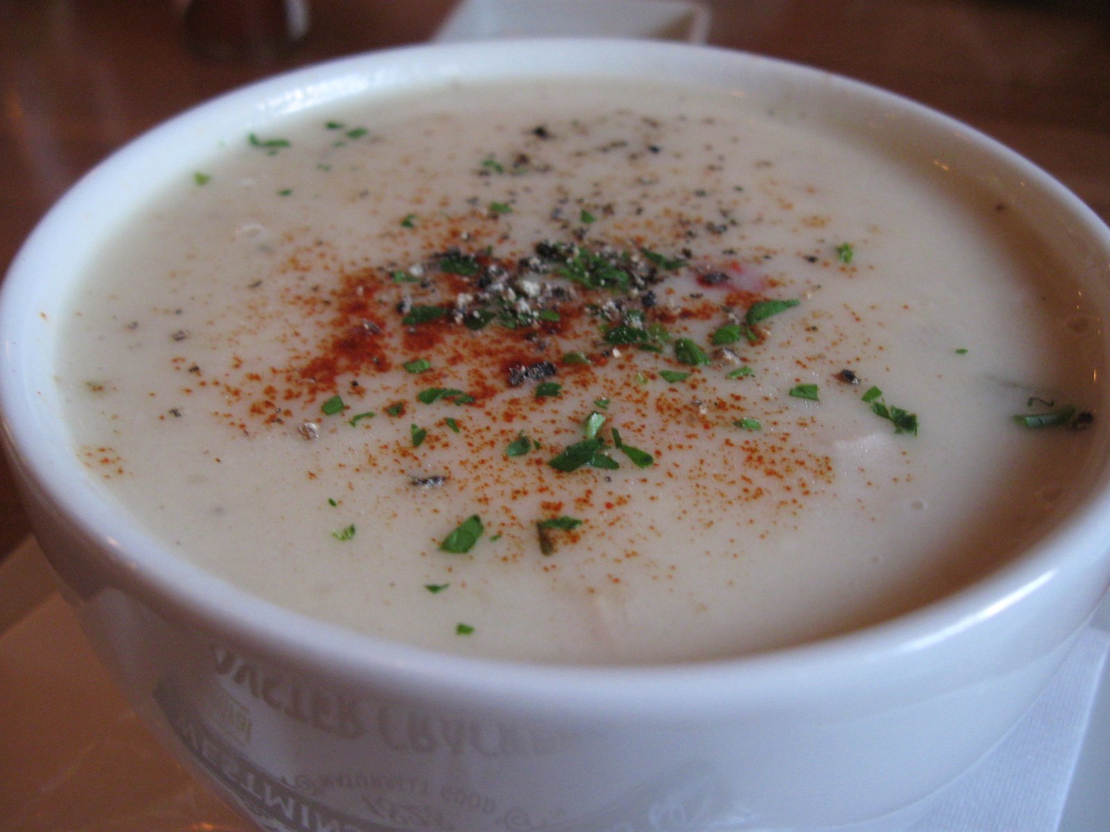 We had each ordered a soup. The clam chowder was nothing exceptional, containing few clams or potatoes; however, it was very well balanced, smooth, and creamy: