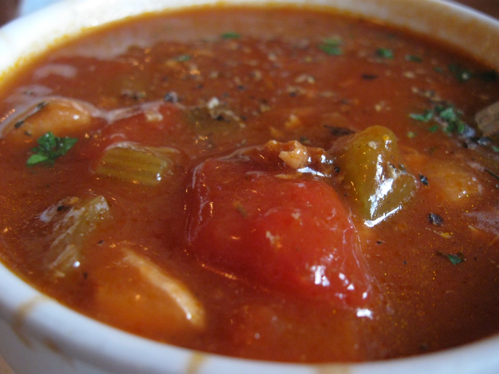 Throughout the soup, chunks of various fishes, large pieces of tomato, and abundant celery, onion, and green pepper slices provided texture as well as flavor. We agreed it was outstanding: