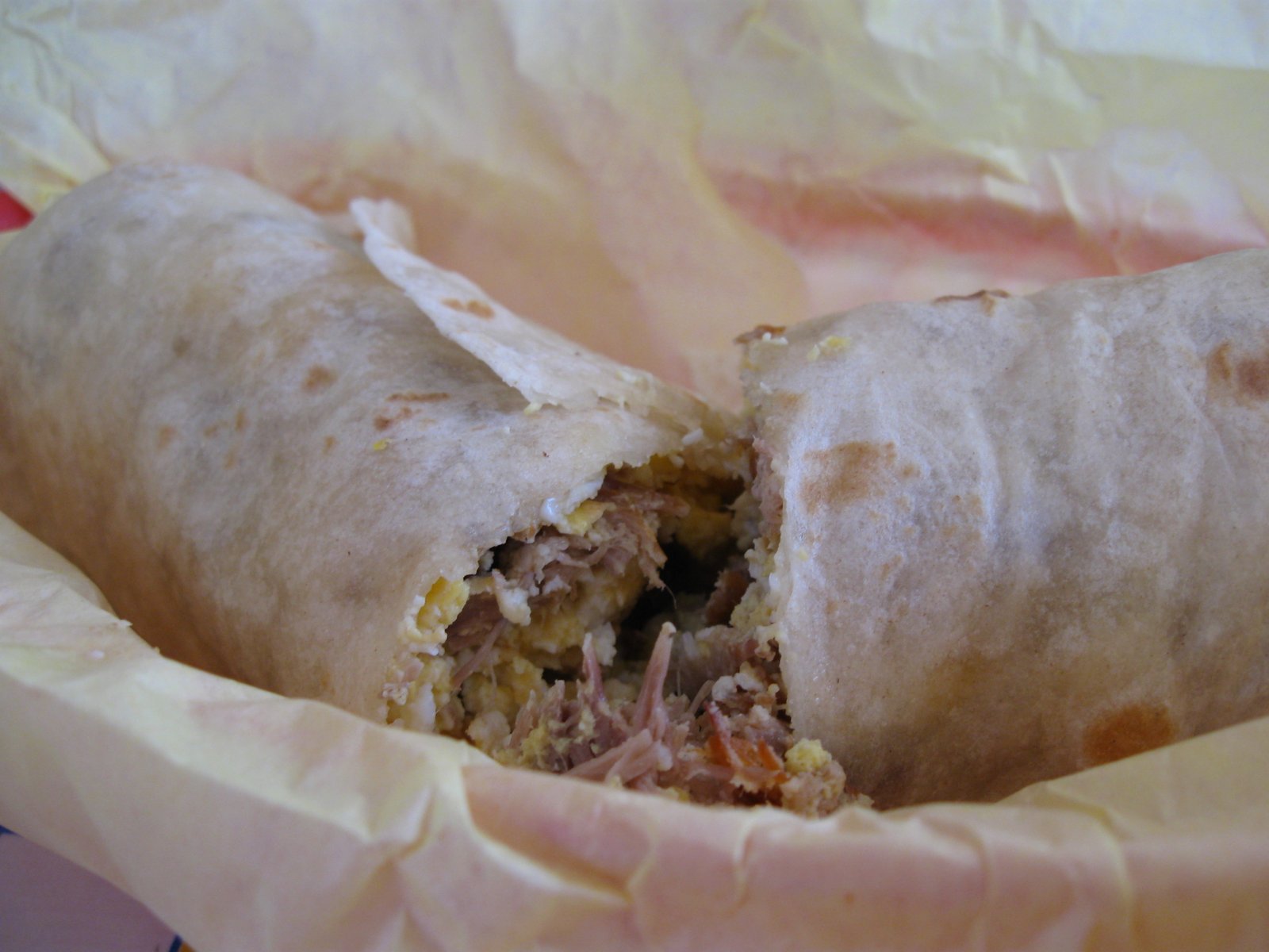 they will fix you a breakfast burrito with carnitas or al pastor as well as