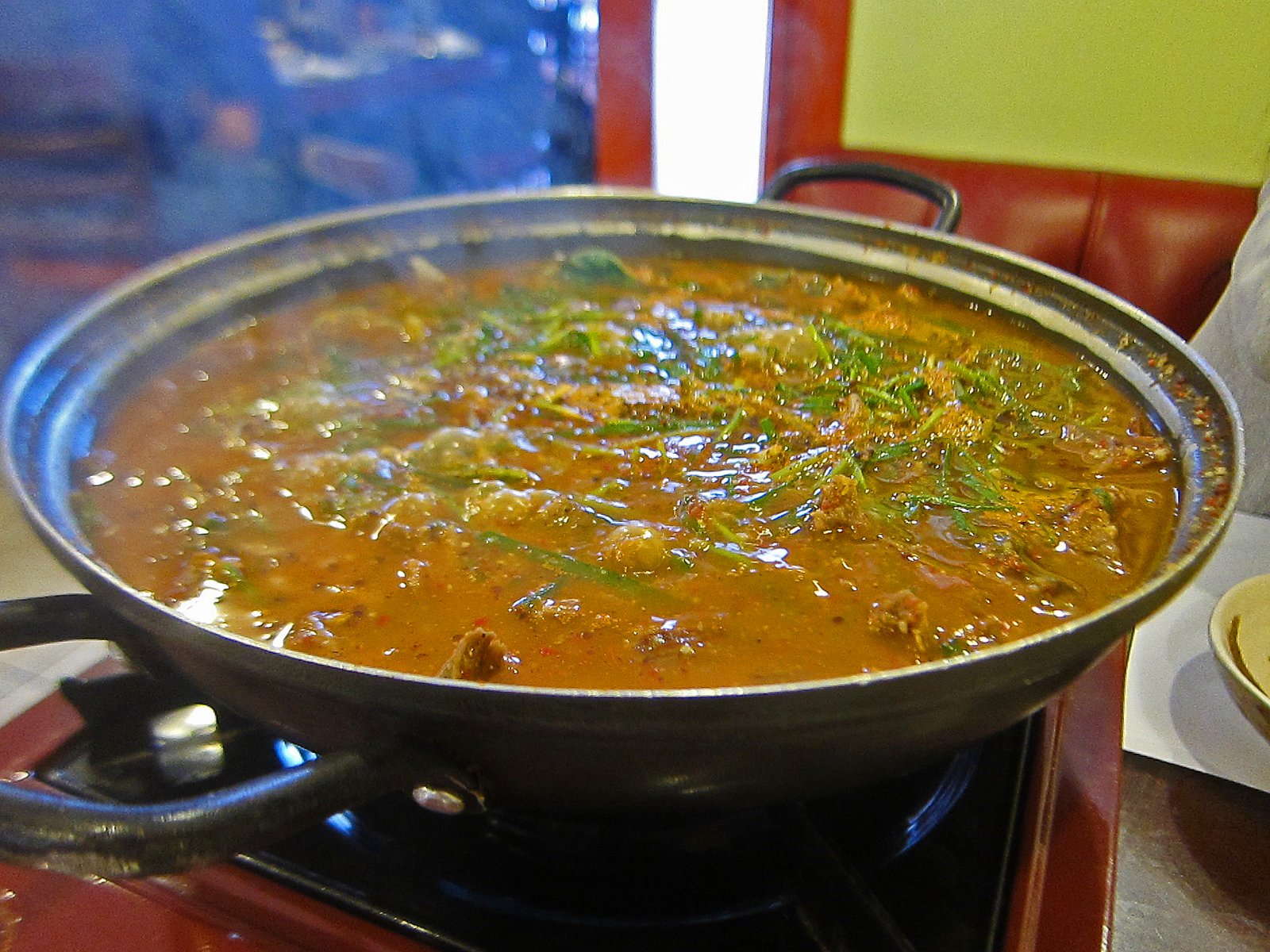 When the weather started turning a bit a couple of weeks ago, the Missus was quite happy….it's getting to be that time of the year again, ramen, stews, and hot pots galore. Her favorite time of the years for eating. One evening She was in the mood for Heukyumso Jungol, Korean Black Goat Stew. The last couple of times we've had that dish, it had been at Grandma's Tofu and BBQ, this time I thought we should check out Chon Ju Jip since it had been a while since we last visited.