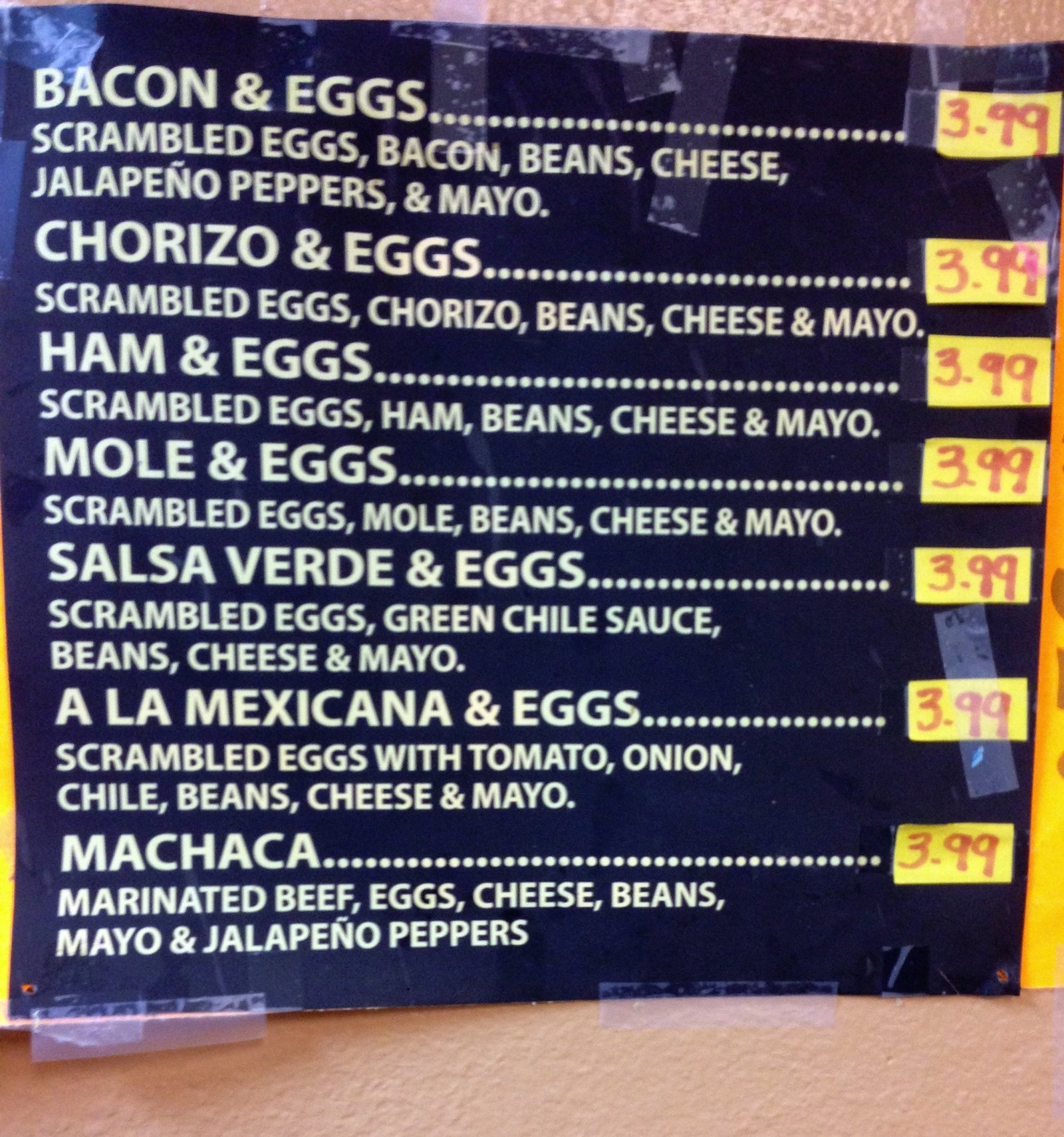 I'm sticking to the breakfast tortas here, since that's what I get most of the time. They're nicely priced at $3.99 and the bread has always been warm and fresh when I've gotten it in the morning. The wait time is about 10-15 minutes, not the fastest, but when I make a decision to visit, I've calculated the impact of my wait time.