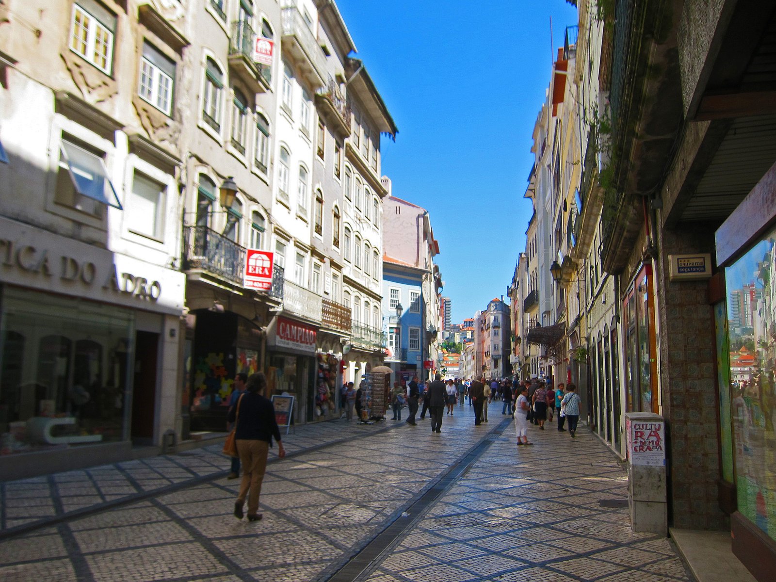 Up the stairs to the side and you end up in the heart of Coimbra's shopping street the busy and bustling streets of Rua Ferreira Borges and Rua Visconde da Luz.