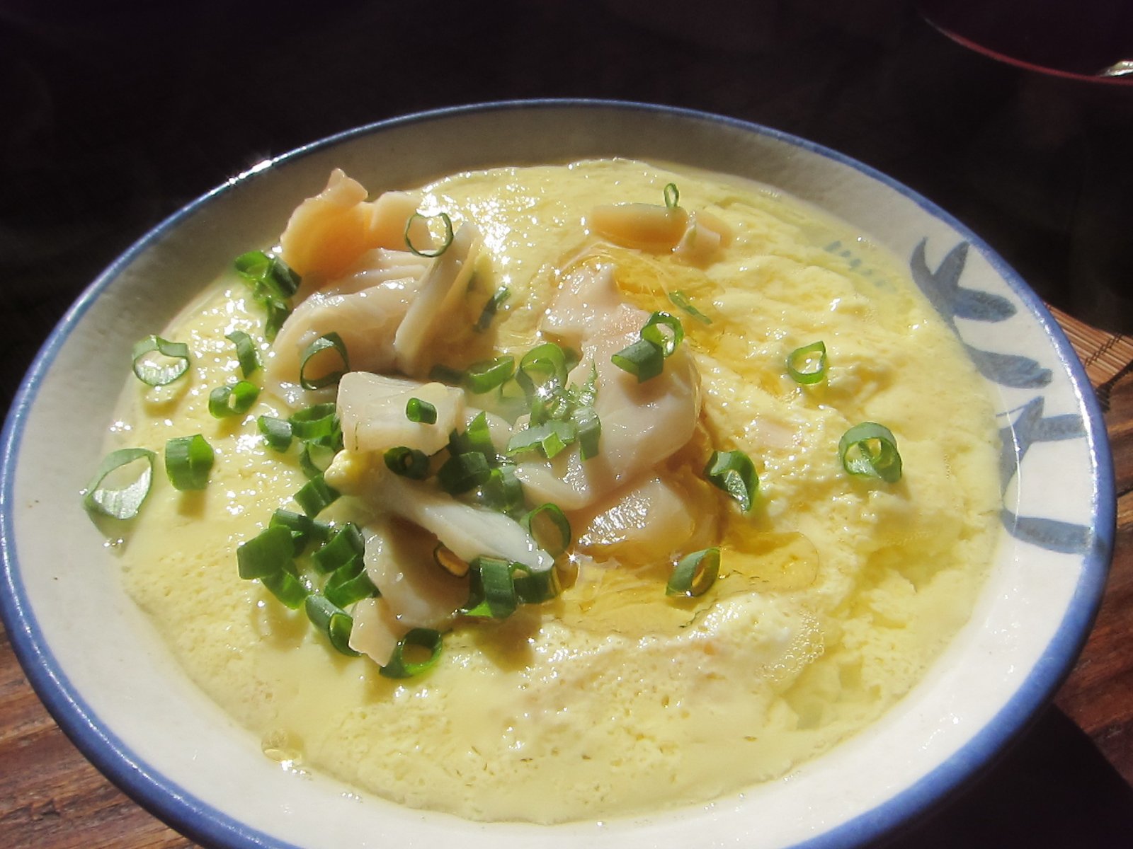 The Missus got into the act too…..She loves steamed egg. This one has cold smoked scallops with sesame oil.